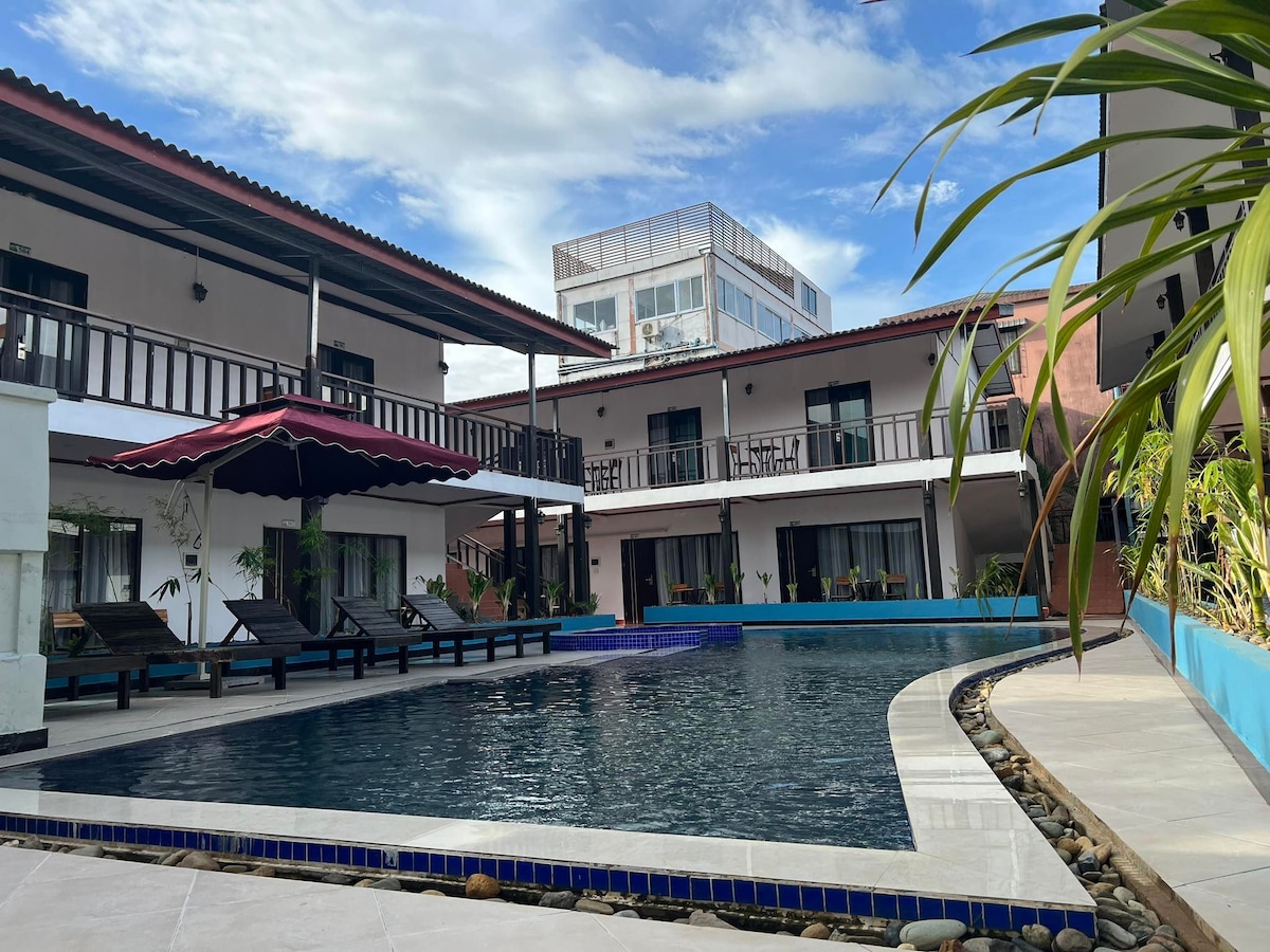 Ang Silver Naga Hotel ay ang perpektong pagpipilian para sa mga pamilya, mag - asawa, at solong biyahero na naghahanap ng tahimik na pamamalagi sa gitna ng kapana - panabik na bayan ng turismo sa paglalakbay ng Vang Vieng. Matatagpuan sa gitna ng bayan sa ilog Nam Song, ang aming hotel ay nagbibigay ng magandang tanawin ng mga bundok ng Vang Vieng karst. Walking distance mula sa mga kuweba, view point at night market, mayroon din kaming in - house restaurant na may available na serbisyo sa kuwarto. Kapag hiniling at may bayarin, puwedeng idagdag sa iyong kuwarto ang dagdag na higaan.