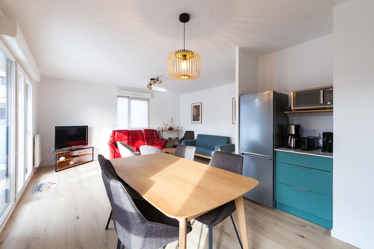Magandang bagong T2 (50 m2) sa pribadong tirahan 2nd floor na may elevator elevator + ligtas na sakop na paradahan. Nilagyan ng kusina, oven , refrigerator , microwave , coffee maker, kettle . Nespresso coffee compatible , Tea , sugar provided . TV , wifi . Banyo na may washing machine, Japanese toilet. Estasyon ng tren 7 minutong lakad , intramuros at port 10 minuto , makasaysayang distrito st Patern 5 minutong lakad . Oras ng pagdating mula 3:00 pm hanggang 9:00 pm .