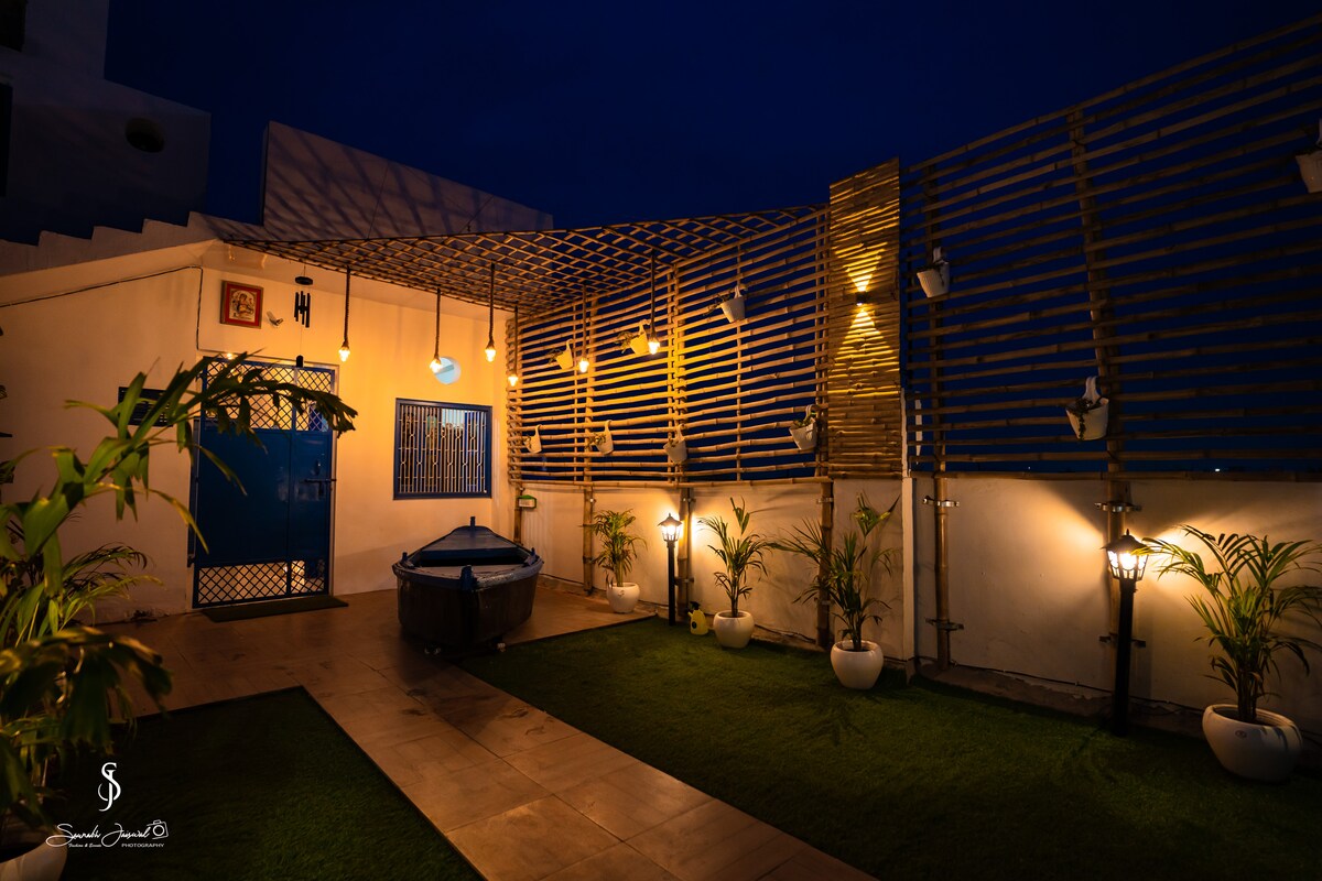 Experience this truly one-of-a-kind penthouse in the holy city, Benares! The house boasts stunning architecture and aesthetic interior finishing creating an amalgamation of colors from Greece and inspiration from the Ghats of Benares. The terrace is designed and illuminated keeping in mind the social media and photography enthusiasts. What’s more? It has an original boat from the Ganges, so you can enjoy the view and relax while listening to the water from the hand crafted bamboo fountain.