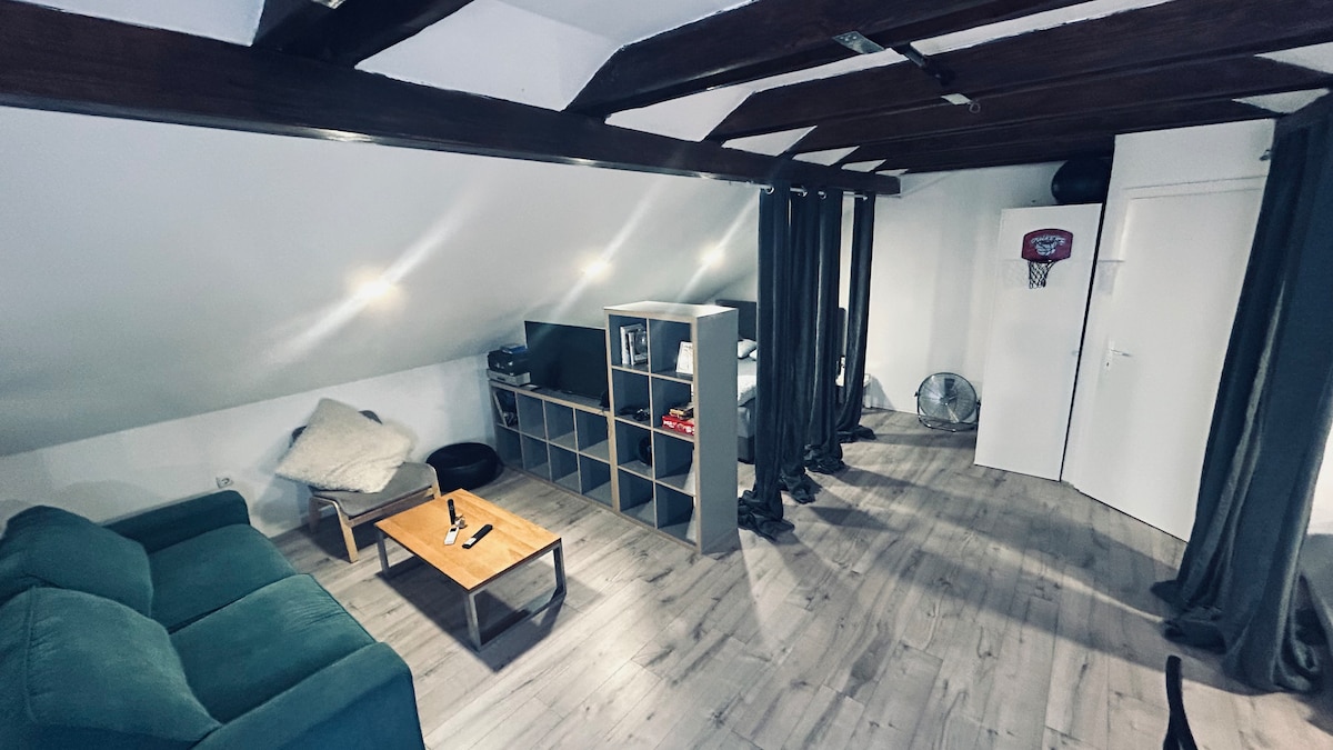 Ang aming apartment ay matatagpuan sa isang tahimik na bahagi ng lungsod. Matatagpuan ito sa unang palapag ng isang bahay ng pamilya, may lawak na 72 m2, at binubuo ng: isang silid-tulugan na may double bed, isang silid-tulugan na may dalawang magkakahiwalay na kama, isang sala na may sulok na sofa bed na nagbibigay-daan sa dalawa pang tao na matulog, kusina, banyo, pasilyo at bukas na terrace-balcony.