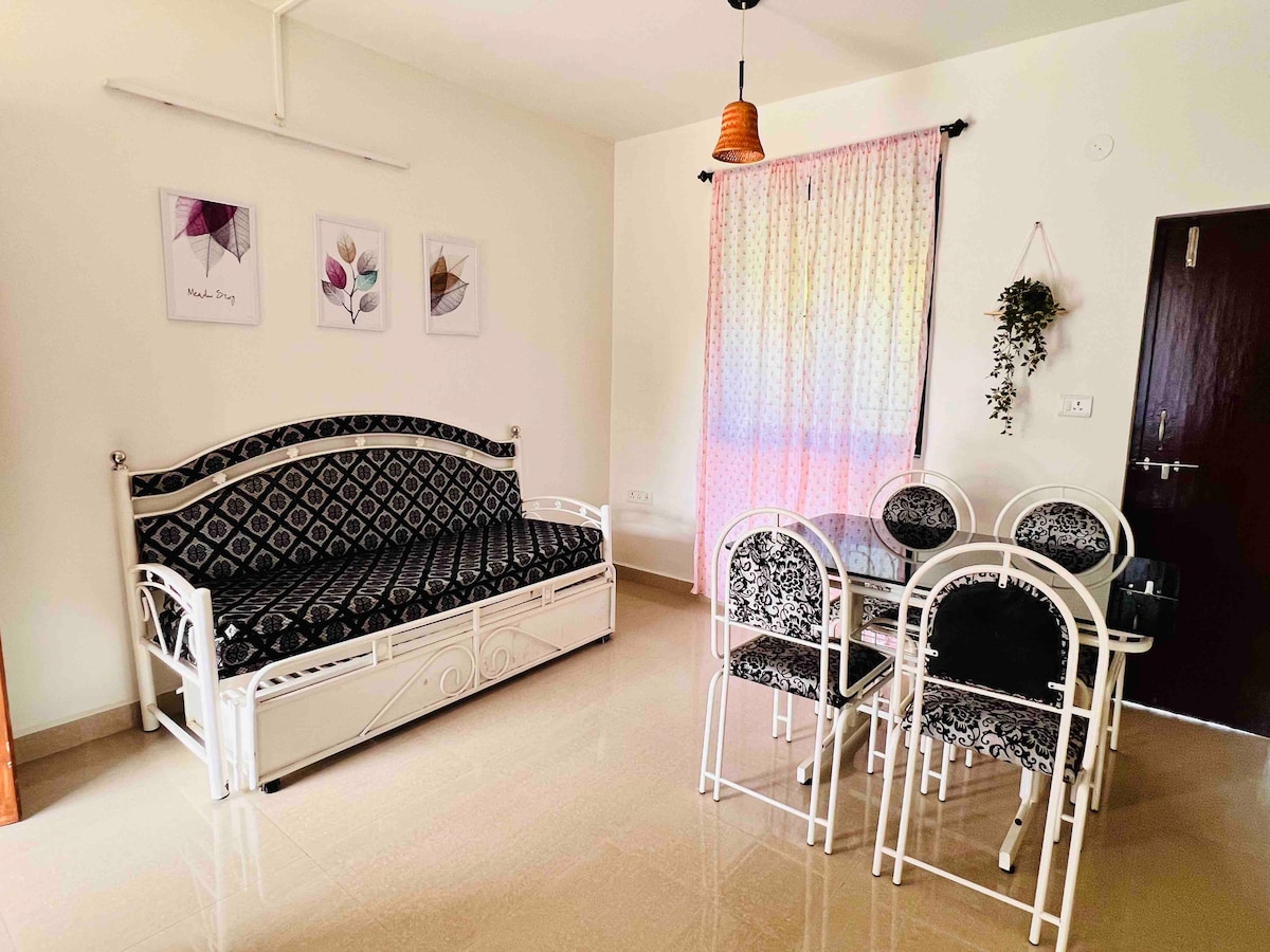 Naghahanap ka ba ng de - kalidad na oras, kalmado, o koneksyon? Tumutugon ang aming tuluyan sa mga pamilya, mag - asawa, at solong biyahero na may pinag - isipang disenyo at lokal na kagandahan. Makatakas sa kaguluhan at makapagpahinga sa aming tahimik na 2 Bhk Bohemian retreat, ilang sandali lang mula sa Varca Beach. Pinagsasama ng apartment na ito na may magandang estilo ang komportableng tuluyan na may kaakit - akit na resort na perpekto para sa isang Mapayapang Bakasyon o isang nakakapagbigay - inspirasyong staycation. 5 minutong biyahe papunta sa beach. Ganap na nilagyan ng komportable at masiglang dekorasyon Nakalaang workspace at high - speed WiFi .