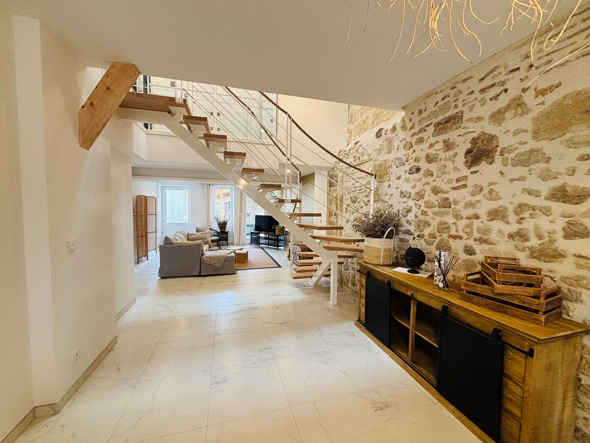 Ang naka - air condition na bahay, sa kanayunan, ay modernong na - renovate, kabilang ang kusina na bukas sa sala/silid - kainan. Malaking mesa para sa 8 tao, 2 sofa. Pantry na may washing machine at tumble dryer. Isang banyong may walk - in shower. 2 silid - tulugan na may double bed sa 160cm. 1 silid - tulugan na may double bunk bed sa 140cm. Magkahiwalay na toilet. Malaking terrace na may bioclimatic pergola at muwebles sa hardin. Malaking garahe para sa 2 kotse. Hindi pinapayagan ang mga party at alagang hayop. Hindi kasama ang housekeeping