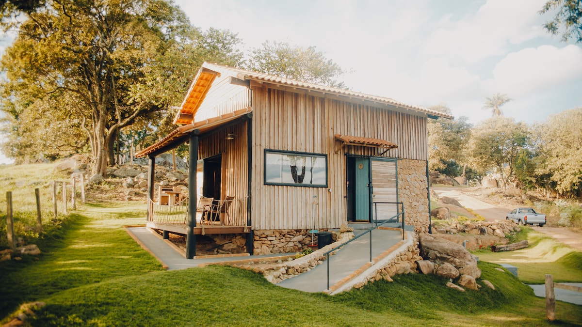 Nasa kabundukan at malapit sa kalangitan ang retreat na "Vila dos Sonhos" kung saan may magagandang tanawin at paglubog ng araw, maraming halaman, ibon, at katahimikan. Makakapag-reconnect ka sa sarili mo sa pamamagitan ng pagkaakit ng lugar na ito na nasa ekolohikal na site na may komportableng bahay na gawa sa kahoy at mga kinakailangang amenidad. Nagsimula ito sa pangarap na muling buhayin ang nasirang pastulan. Mayroon itong maliit na ubasan, mga puno ng prutas, mga katutubong puno, mga puno ng oliba, dam, kagubatan, at malinis na tubig! Kapag maaliwalas ang gabi, may mga ilaw na makikita mula sa hanggang 8 lungsod.