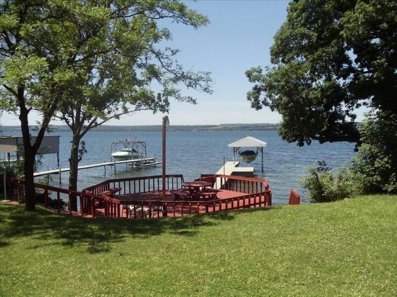 Tunay na kanlungan... mapayapa, tahimik at kahanga - hanga. Nasa lawa mismo ang bahay na may magagandang tanawin ng lawa ng Seneca. Tinatanaw ng malalaking bintana ang lawa mula sa sala at silid - tulugan sa harap. Ang isang hiwalay na bahay ng pamilya na matatagpuan sa isang patay na kalye na limitado sa lokal na trapiko, ang 2 silid - tulugan, 1 1/2 banyo sa buong taon na bahay ay magbibigay sa iyo ng lahat ng kailangan mo para sa iyong susunod na bakasyon. Ang bahay ay perpekto para sa 2 mag - asawa o isang pamilya na may apat na tao. Bonus room sa itaas ng boathouse na may pull - out sofa.