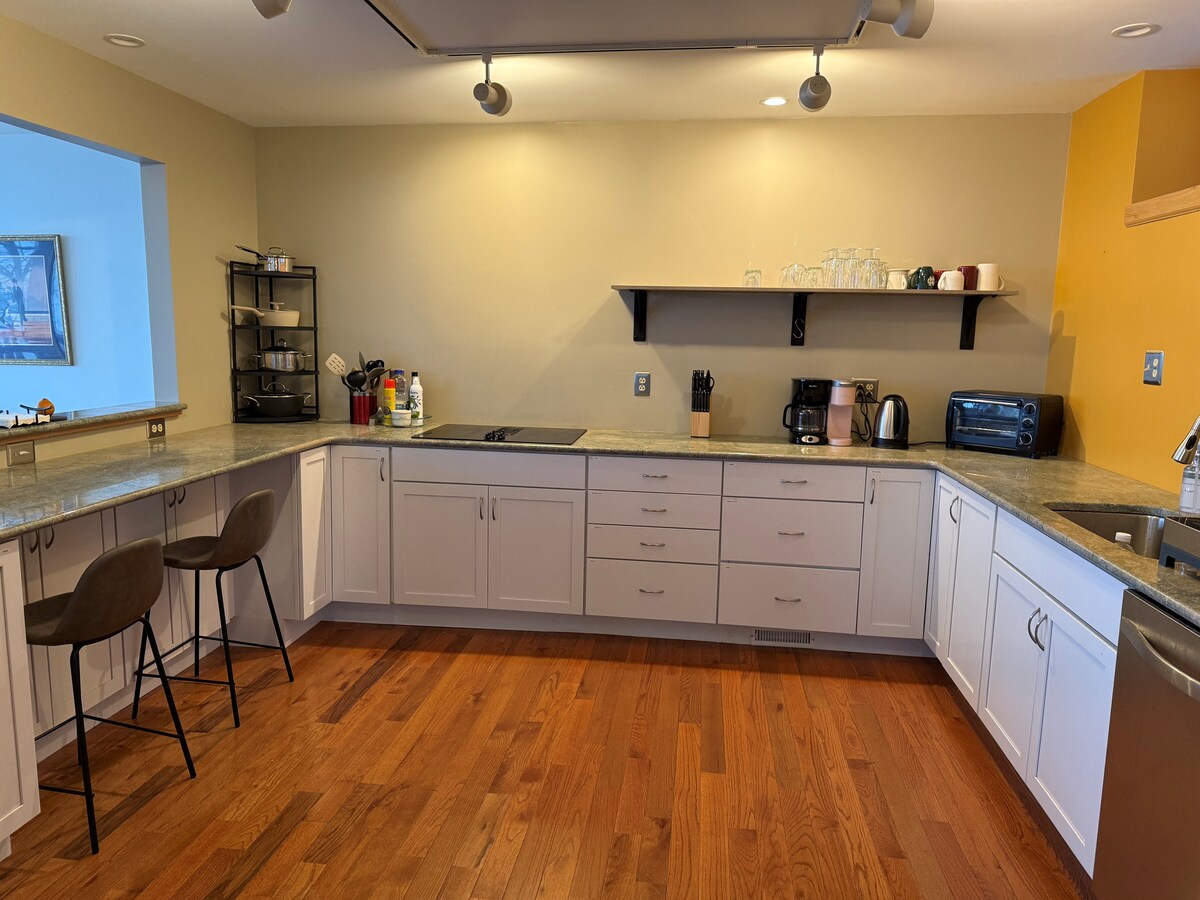 Isa itong 3 silid - tulugan na bahay na may 2 banyo. May mga sapin at tuwalya at kusinang kumpleto sa kagamitan na may mga serving ware at lutuan. Nasa tapat kami ng kalsada mula sa lawa na may access sa lakefront. May pantalan na magagamit mo. Wall outlet (NEMA 14 -5)para sa EV Charging station. Available ang package para sa pag - aalaga ng sanggol kapag hiniling at availability. Kabilang dito ang high chair, stroller, baby tub, exersauser, at pack n play. Karagdagang $50 ito para sa tagal ng pamamalagi.