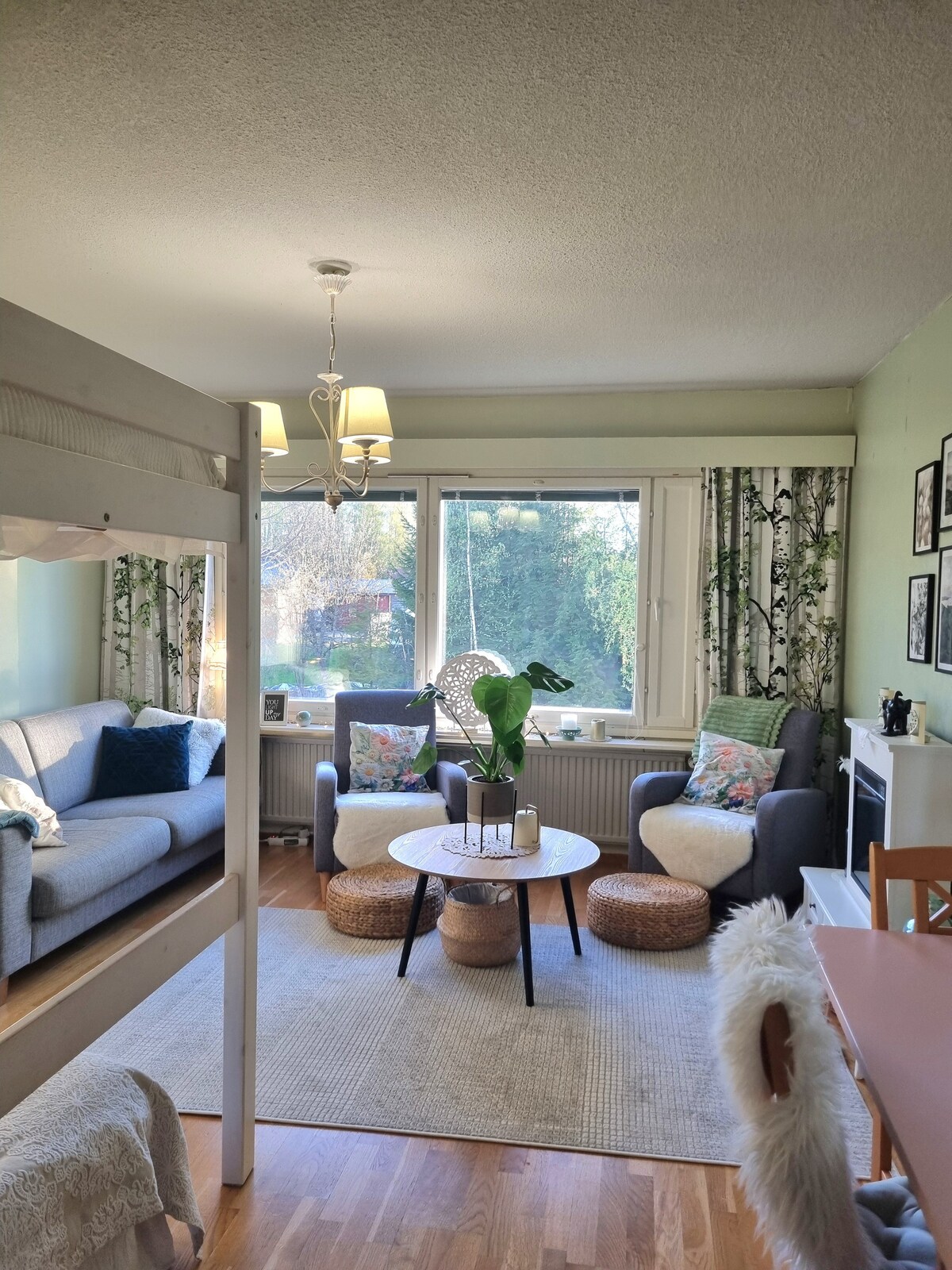 Tervetuloa viihtymään tilavaan ja kodikkaaseen kaksioon Kuopion Kettulanlahdessa! Asunnossa on oma sisäänkäynti sekä joustava sisäänkirjautuminen avainlaatikon ansiosta. Makuuhuoneessa on 160 cm leveä parivuode laadukkaalla Tempur-patjalla, ja olohuoneessa on levitettävä vuodesohva sekä kaksi erillistä yhden hengen vuodetta – tilaa riittää isommallekin seurueelle. Asumismukavuutta lisää viilennystä tuova ilmalämpöpumppu. Pihassa on ilmainen autopaikka ja lemmikit ovat lämpimästi tervetulleita.