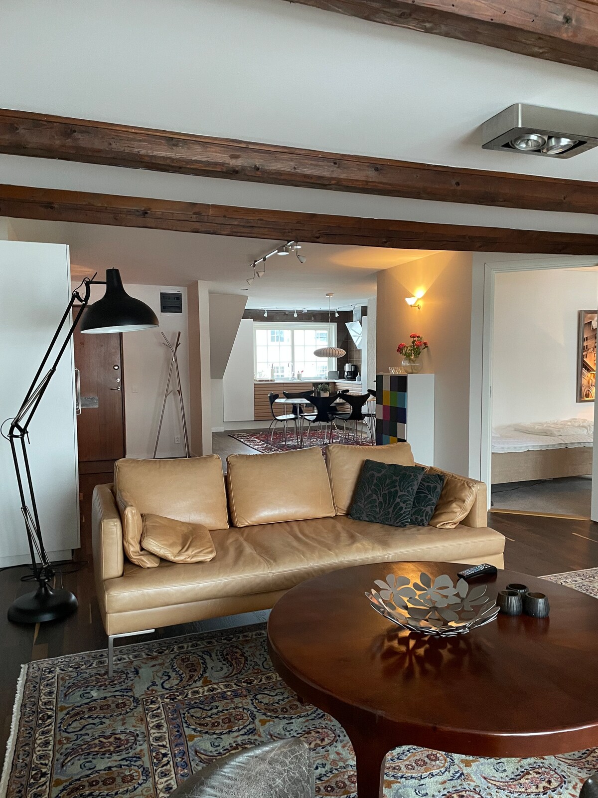 Malaking kaakit-akit na attic na may 3 silid-tulugan para sa anim na tao at dagdag na kama para sa dalawang tao, kabuuang 8 kama. Kusinang kumpleto sa kagamitan at malaking sala na may mataas na comfort factor. 4 minuto lamang mula sa Rv 45 at wala pang 10 minuto mula sa sentro. Libreng pag-charge ng electric car at malaking parking lot na direktang konektado sa property. Nakatira ka rito nang mag-isa ngunit malapit pa rin sa kalikasan at sa sentro. Para sa pinakamalaking kaginhawa, kasama ang mga kobre-kama, tuwalya at final cleaning!Parang nasa bahay ka lang kahit malayo ka sa bahay" Malugod na pagdating!