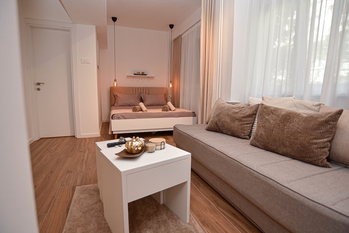 Masiyahan sa isang naka - istilong karanasan sa sentral na lugar na ito ng Tetovo. Ang apartment ay may 42m2 at kumpleto ang kagamitan. Ang buong apartment ay may ganap na bagong muwebles, banyo at kusina, magandang terrace na may magandang tanawin. Ilang minuto lang mula sa lahat ng pangunahing lokasyon sa lungsod, bilang munisipalidad, mga pasilidad sa kultura, mga restawran, mga coffee bar, shopping mall. Ikalulugod kong maging host ka at ipakilala ka sa lungsod.