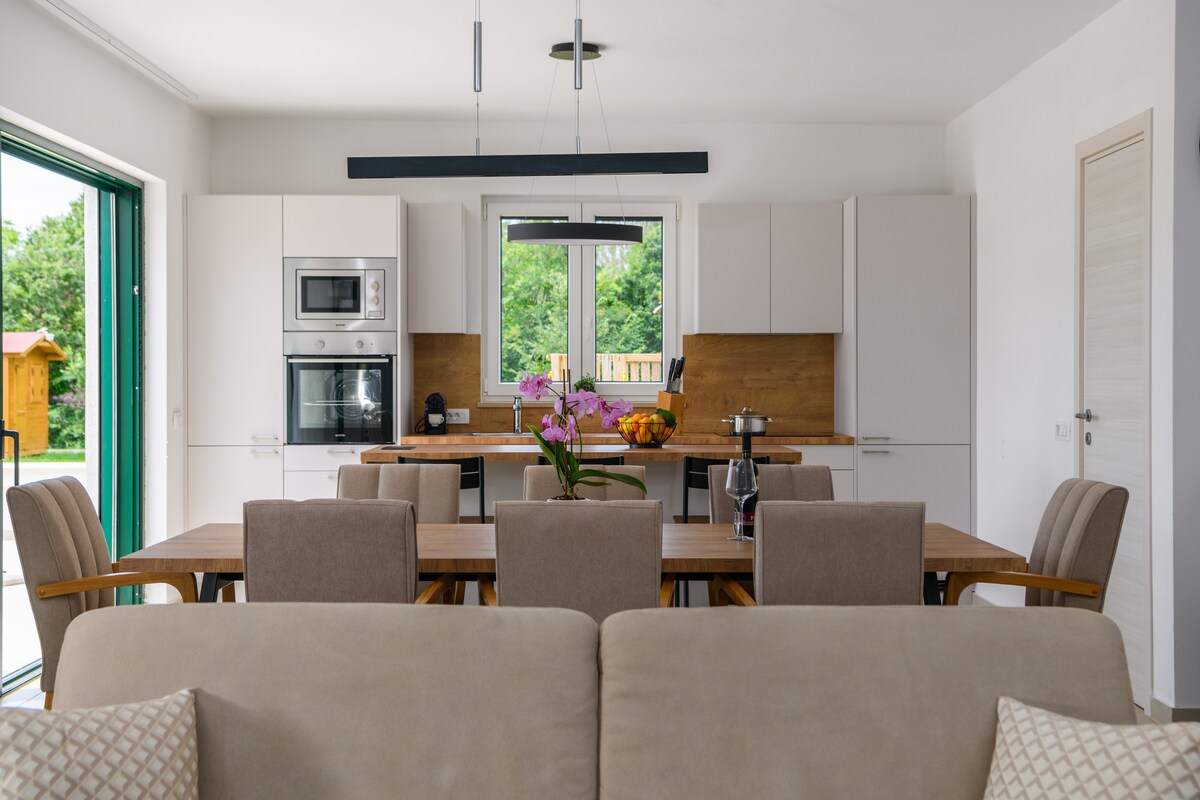 Inihahandog namin sa iyo ang Echo villa sa Šegotići, Istria, kung saan mapagmahal ang hugis ng iyong oasis sa hinaharap. May 3 komportableng silid - tulugan, 3 banyo, sala at kusinang kumpleto sa kagamitan, nag - aalok ang bahay na ito ng init ng tuluyan para sa 8 tao. Pinapayagan ka ng kusina sa labas na maghanda ng masasarap na pagkain, habang tinatangkilik ang pool na may jacuzzi at bakuran ay nagiging hindi malilimutang sandali ng pagrerelaks. ❤️