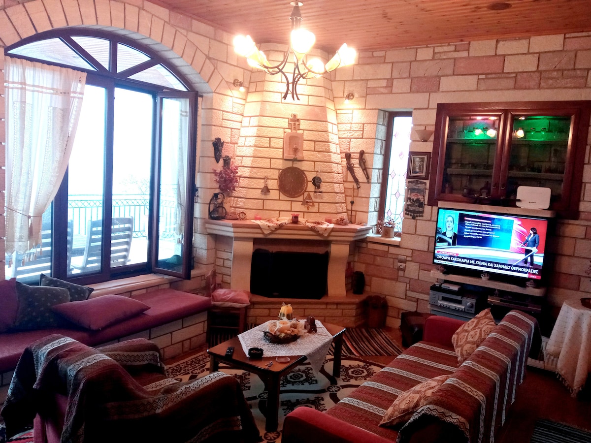 Ang bahay ay matatagpuan sa gitna ng magandang bagong Mikro Chorio, malapit sa village square at sa Country Club, sa isang napakagandang lugar sa paanan ng Helidona na may tanawin ng Kaliakouda at Velouchi. Itinayo gamit ang tradisyonal na arkitektura ng bato at kahoy. Binubuo ito ng dalawang magkakahiwalay na tirahan, isa sa unang palapag at isa sa ikalawang palapag. Ang apartment sa unang palapag ay may sala, kusina, silid-tulugan at banyo.