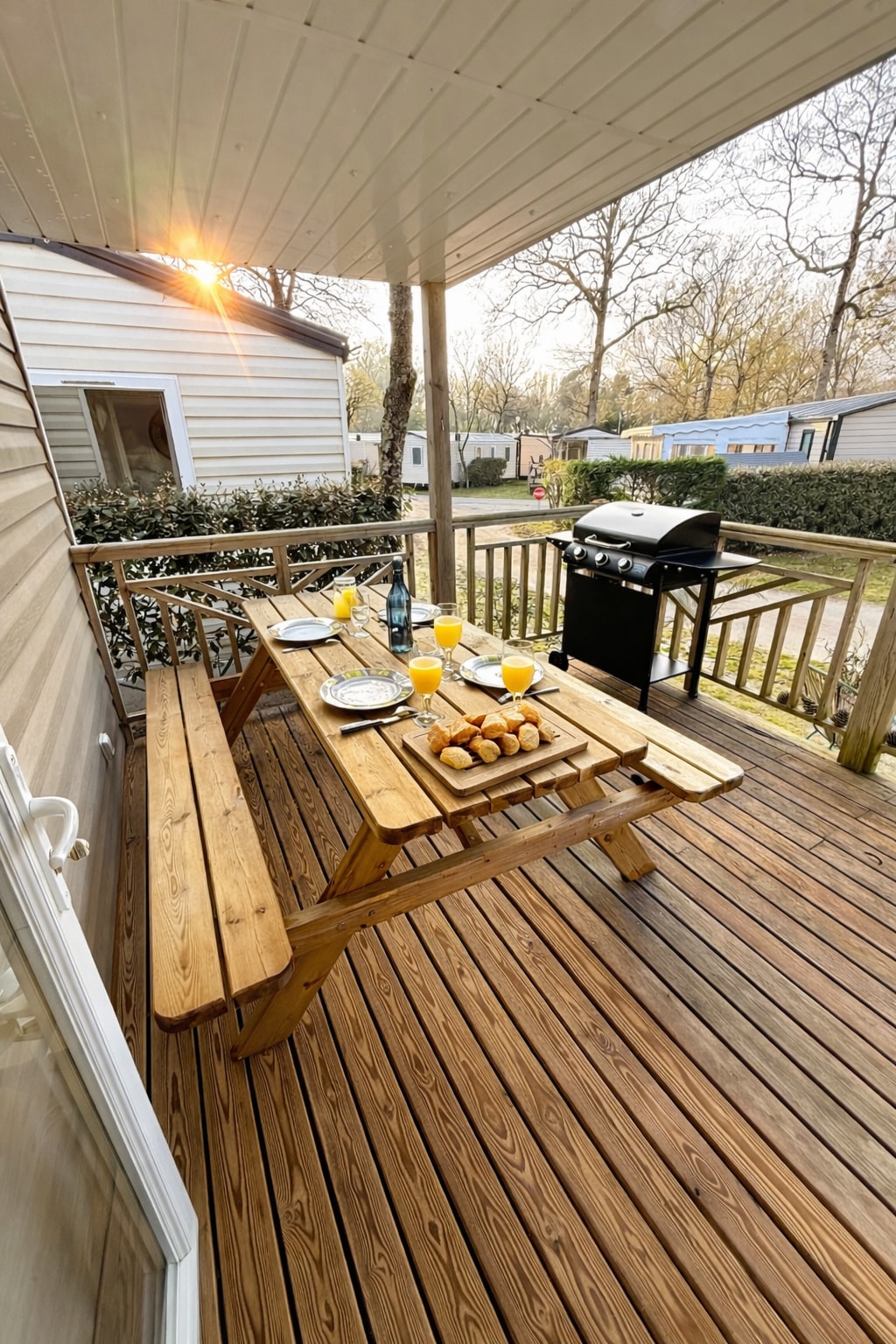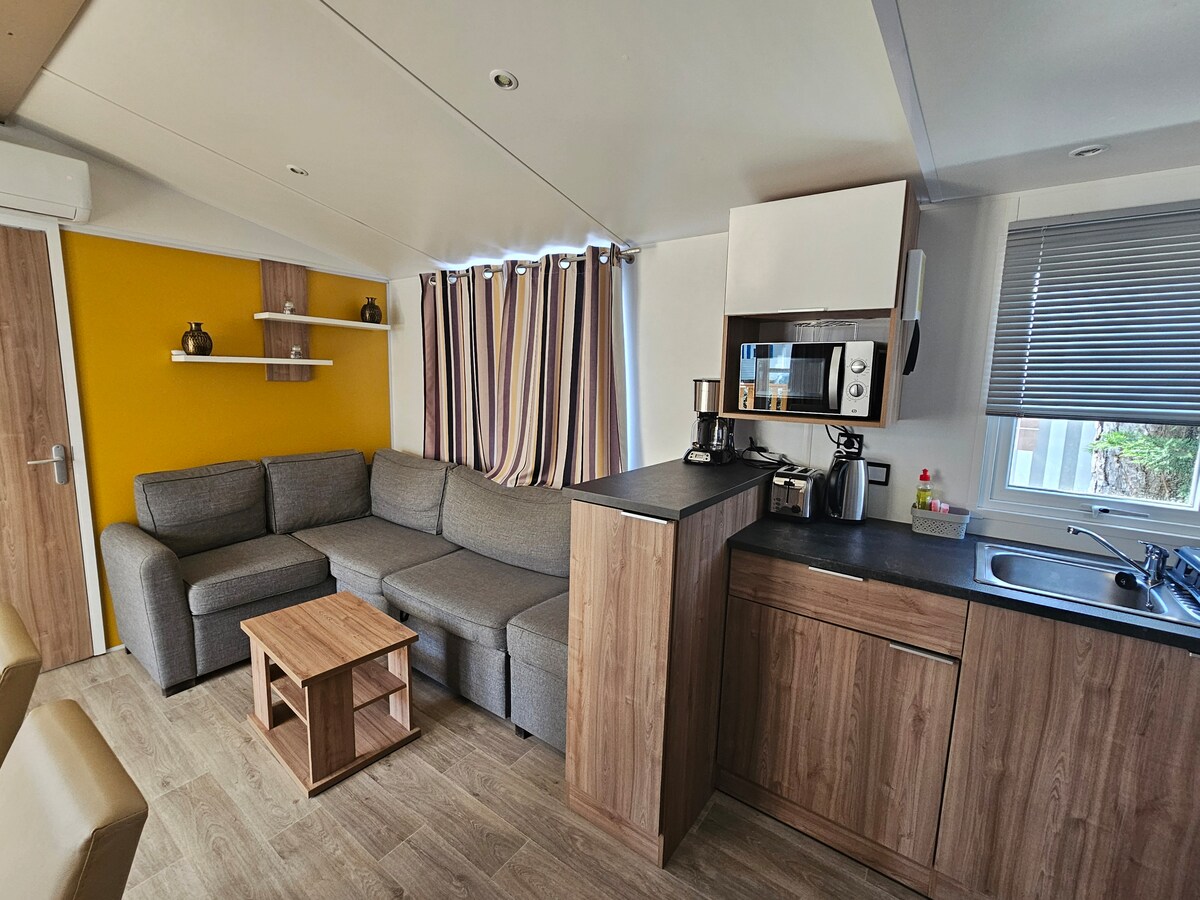 Mobile home para sa 6 na tao na may air conditioning, kasama ang mga kagamitan sa paglalaba, may terrace at BBQ