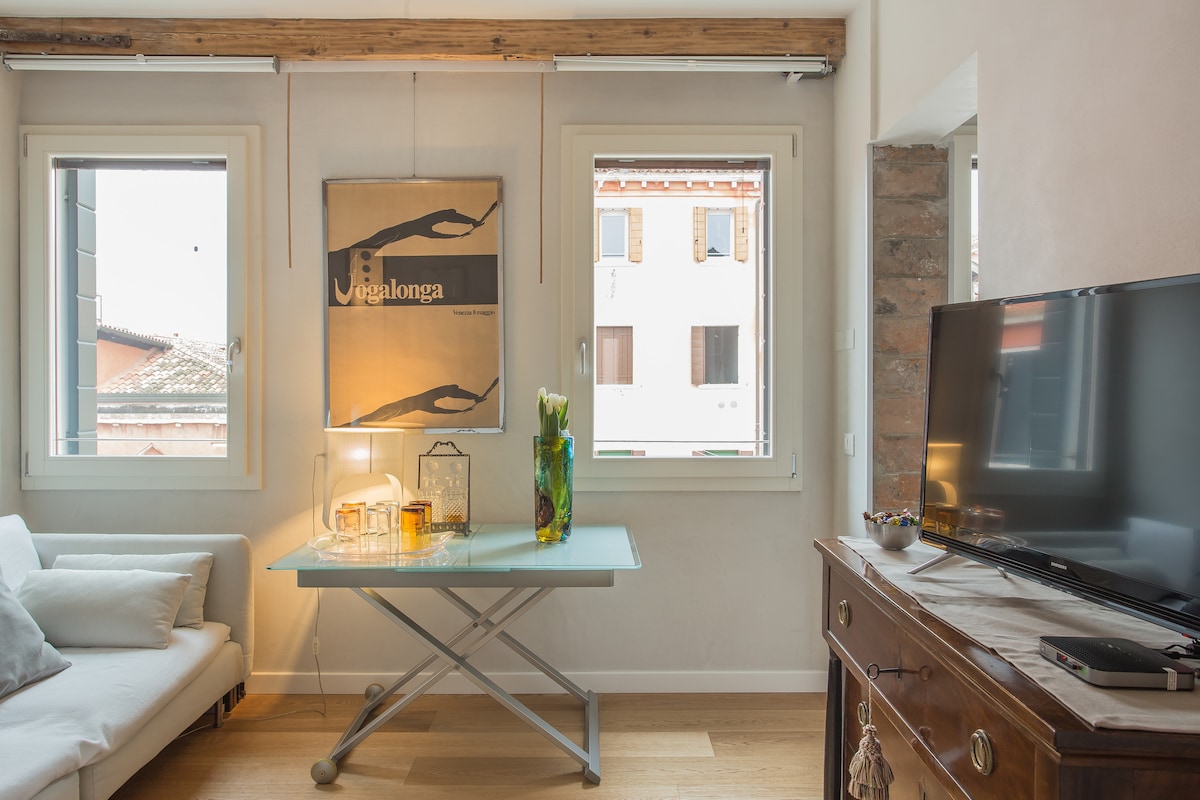 In this romantic and comfy apartment, just a few minutes away from St. Mark's Square, you will have a fantastic view on Venice's rooftops to enjoy. You will find a welcoming bedroom and a comfortable sofa bed and will have access to a Netflix Ready TV, WiFi, under-floor heating and air conditioning! Our hosts will be offered coffee, tea, and... a bottle of good wine and a welcome breakfast in the neighborhood's best bakery. Check-ins are followed personally. No pets allowed.