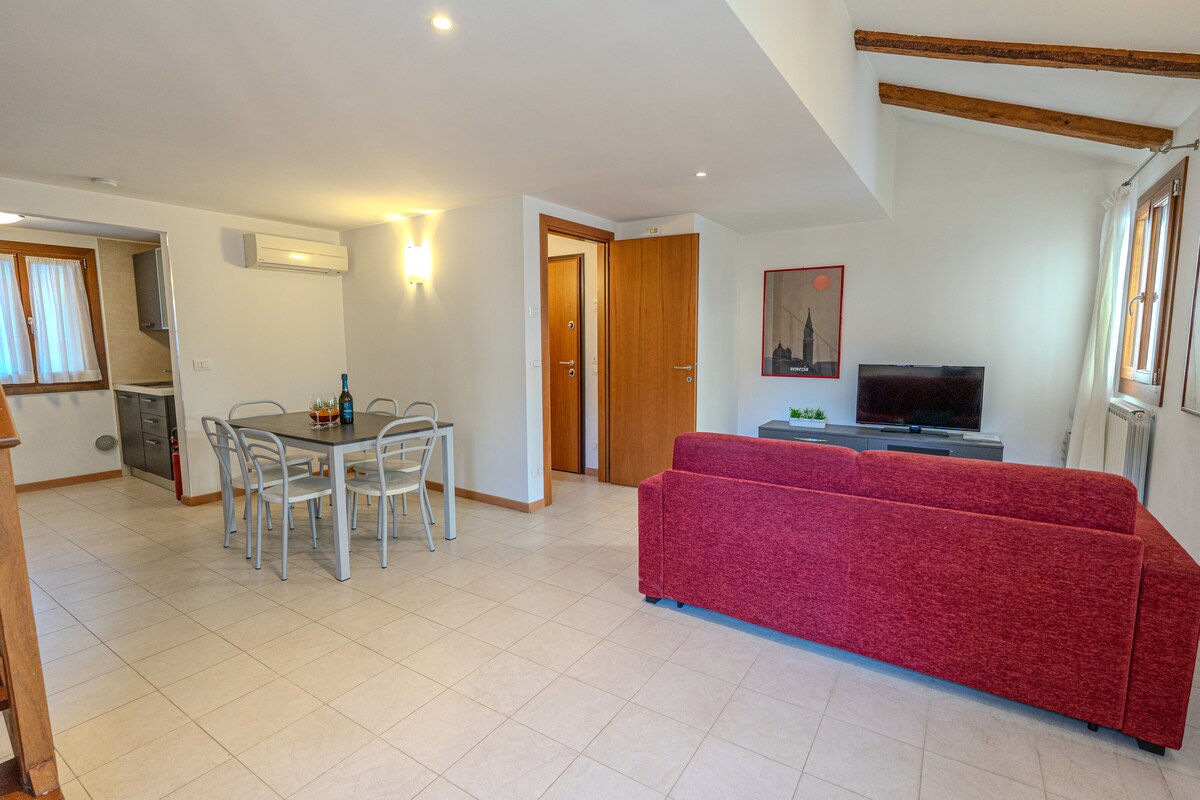 Ang pinainit na sahig na gawa sa kahoy at ang sala na may mga nakalantad na sinag ay ginagawang kaaya - aya ang tuluyan. Sa terrace sa sahig, magkakaroon ka ng tanghalian at hapunan sa labas sa mga bubong ng Venice. Alilaguna Motorboat AIRPORT - S. STAE (meeting point). Ang S. Stae ay stop no. 5 sa Grand Canal. Sa iyong pagdating, dapat bayaran ang buwis ng turista sa Munisipalidad na katumbas ng: € 4.00 bawat tao kada gabi ng pamamalagi; € 2.00 para sa mga kabataang nasa pagitan ng 10 at 16 taong gulang (hindi pa nakukumpleto)