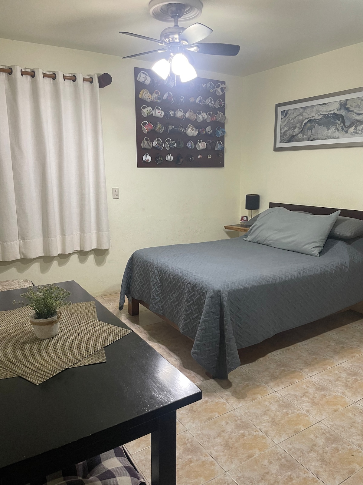 Con ubicación céntrica y entrada independiente, este lugar tiene todo lo que necesitas para tener una estancia cómoda. Cuenta con terraza con asador y mesa, un baño completo, cocina con equipamiento básico y sala con televisión, área de trabajo y sofá-cama matrimonial, la recamara es también matrimonial. Por su estratégica ubicación resulta muy cómodo, teniendo super mercados, restaurantes, cafés, parques, central de autobuses y el centro histórico a menos de cinco minutos a pie.