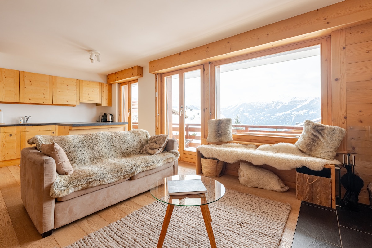 Ang marangyang penthouse na ito na may mga kagamitan ng taga - disenyo ay matatagpuan 500m mula sa sentro ng Verbier at 70m mula sa Brunet bus stop. Ang tahimik na lugar na ito ay nag - aalok ng mga kamangha - manghang tanawin ng Alps at isang maikling lakad lamang ang layo mula sa Le Rouge ski lift. Kasama sa mga amenidad ang: 2 double bedroom na may queen size na higaan, isang stand - up na mesa na may 27" 4k monitor, isang fully fitted na bukas na kusina at isang malaking sala, isang vintage na kalan para sa karagdagang init, isang terrace, at isang heated ski room, at isang malaking panloob na paradahan.