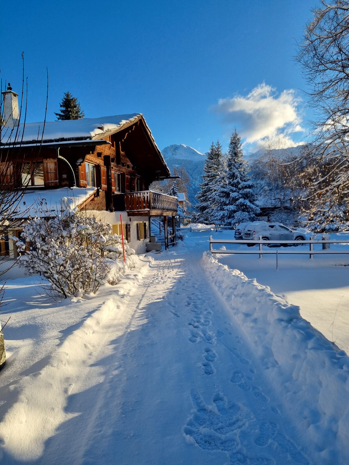 Isang napaka - maginhawa at maluwang na silid - tulugan. Self catered. Hiwalay na pasukan. Napakatahimik na lokasyon, na nakakabit sa isang tipikal na Swiss chalet. Nasa unahan ang Tuluyan na nakaharap sa mga bundok, at makikita rito ang makapigil - hiningang tanawin ng Swiss Alps at mga paglubog ng araw. Medyo malayo sa magulo at maingay na ski resort pero mapupuntahan pa rin sa loob ng isang minuto sakay ng kotse o 500m walk papunta sa libreng ski bus Madaling pag - access sa pamamagitan ng kotse Libreng paradahan sa loob Lahat tayo ay mga ski na guro at maaaring magbigay ng mga leksyon sa ski sa kaakit - akit na mga rate