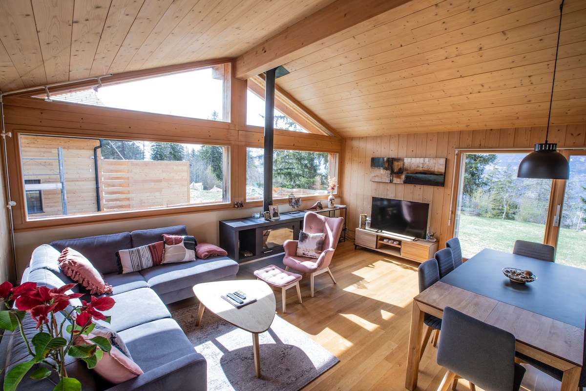 Malugod na tinatanggap ang mga aso.🐶 Available nang libre ang Tesla charger. Sa mga pintuan ng istasyon ng Crans - Montana, ang P 'tit Chalet ay isang natatanging lugar na matutuluyan. Sa independiyenteng studio na ito na may 35 metro kuwadrado na may malinis na dekorasyon na lumulutang sa isang hangin ng holiday at katahimikan. Masarap sa pakiramdam. Idinisenyo ang malaking pribadong terrace na may barbecue para sa pagpapahinga. Nag - aalok kami sa iyo ng homemade jam at maliit na bote ng lokal na alak.
