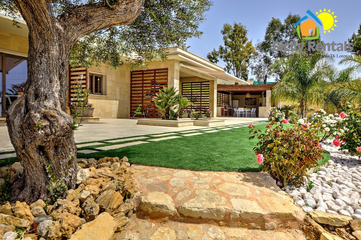 Lussuosa villa indipendente, con vista mare e parcheggio privato. Completamente climatizzata, è composta da una luminosa cucina, un grande bagno, una camera matrimoniale e una con due letti singoli. L'area esterna è una vera oasi! Vi sono piscina, vasca idromassaggio con acqua riscaldata, una doccia esterna e un piccolo bagno esterno con wc e lavandino. Troverete inoltre un patio con zona pranzo, un’area relax attrezzata di comodi divani e un'altra veranda con sedie e tavolino.