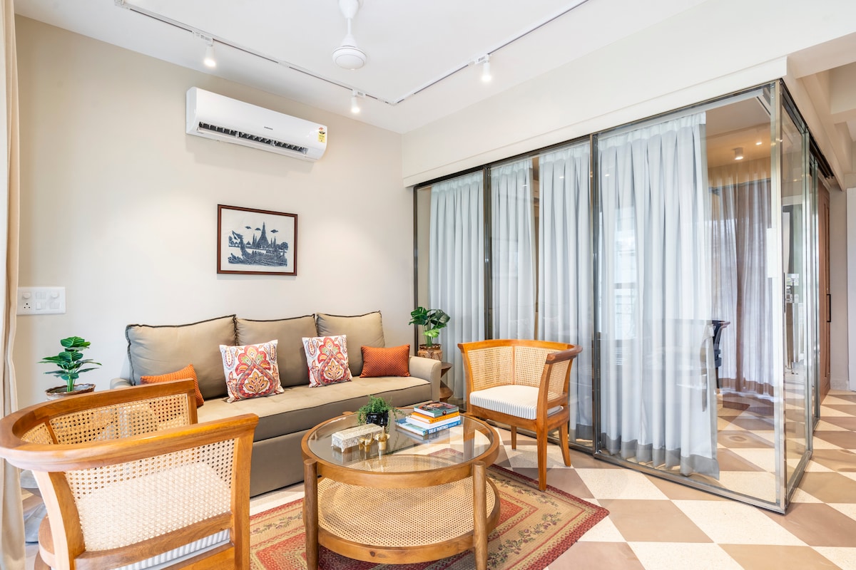 Classy 1bhk with pool | 10 mins from the beach