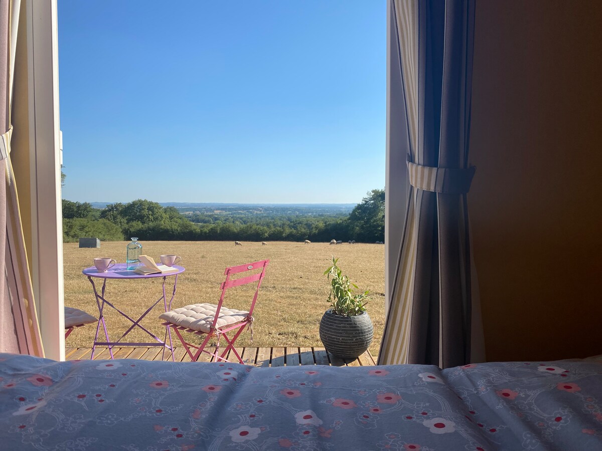 Maging komportable sa loob ng ilang araw sa isang mapayapang lugar na may mga nakakagulat na tanawin sa gitna ng Black Valley. Mayaman sa bocage at berdeng tanawin nito, nag - aalok sa iyo ang aming mapayapang oasis ng kabuuang pagbabago ng tanawin para sa iyong bakasyon sa pamilya. Matatagpuan sa parang ng aming bukid, ang aming mobile home ay isang perpektong lugar para matuklasan ang mga bucolic landscape, bisitahin ang George Sand Valley, ... Depende sa aming mga petsa ng pagpoproseso, maaari kang mag - book ng mga produkto mula sa aming bukid (terrines)
