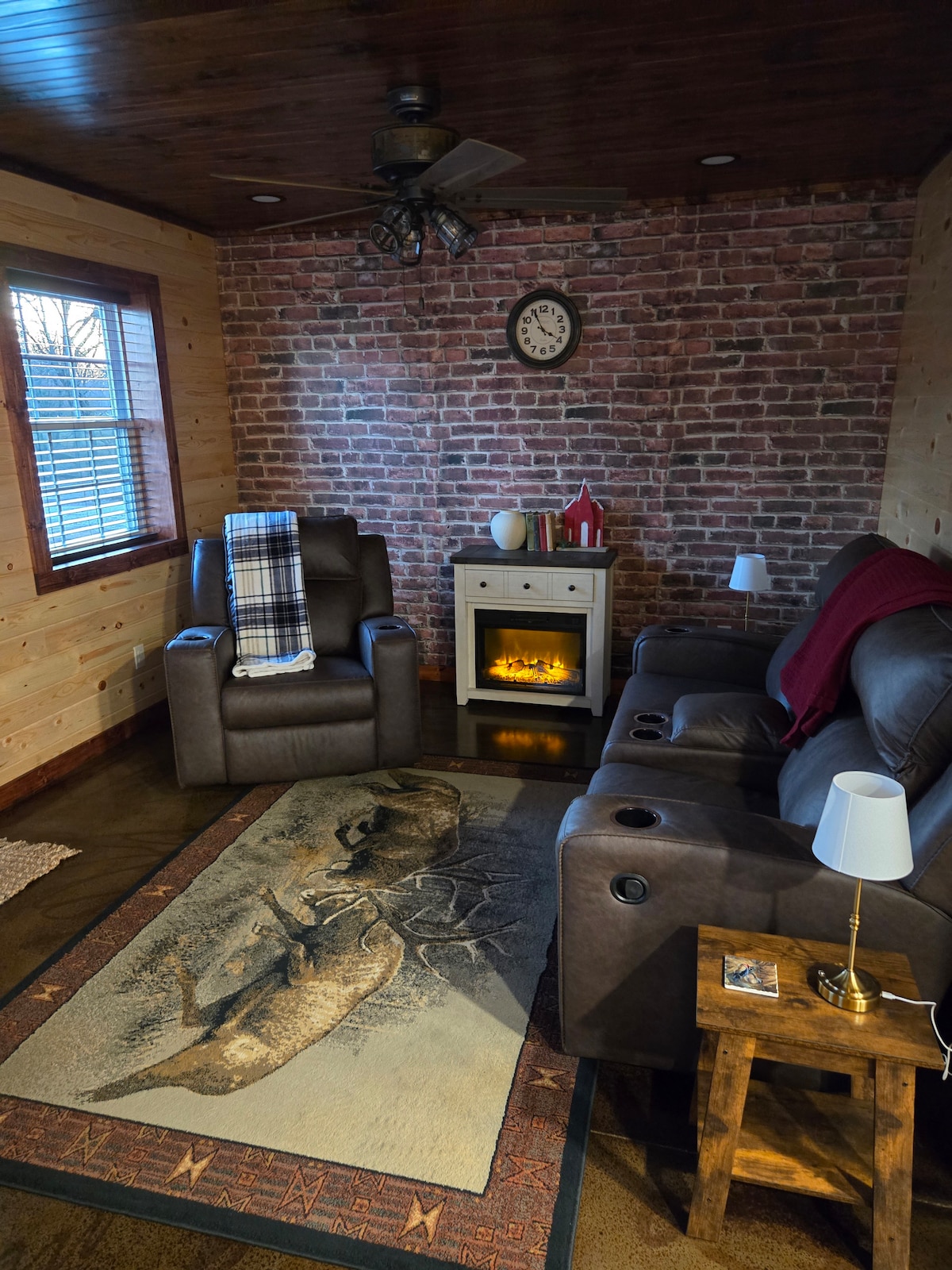 Welcome to Red Country Retreat, a peaceful escape tucked into the corner of our shop, right at the edge of the woods! Wakeup to cows grazing in the pasture, chickens happily cackling in the distance and the kind of quiet you can only find in the country. Inside, enjoy warm cabin vibes with rustic charm and a cozy electric fireplace-the perfect place to slow down and unwind! Whether your looking for a weekend reset or a country getaway, Red Country Retreat offers simple living at its finest!