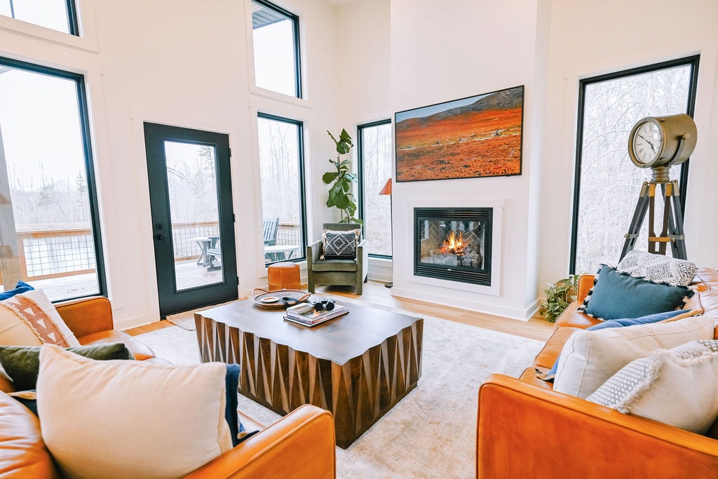Gawa sa lumang kahoy at mga pinto mula sa bukirin ang cabin namin. Dahil madalas akong magkaroon ng sipon, naglagay ako ng heated floor at heated towel bar bukod pa sa mini‑split at de‑kuryenteng fireplace! Napapaligiran ang cabin ng mga pastulan kung saan nakatira ang mga baka, kabayo, kambing, pot belly pig, at manok namin. Ang pinakamagandang bahagi ng pamamalagi sa BWJ Cabin ay ang pag-upo sa rocking chair sa balkon, day bed swing, o hot tub habang pinagmamasdan ang tanawin at walang ginagawa.
