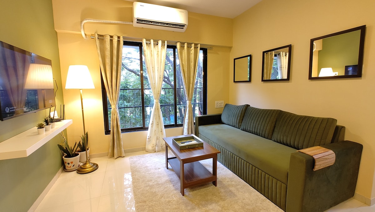 Tumakas papunta sa naka - istilong 1BHK na ito, ilang minuto lang mula sa Versova Beach! Nagtatampok ang naka - air condition na tuluyan ng komportableng higaan, kumpletong kusina (refrigerator, microwave, mga pangunahing kailangan), at komportableng sala na may smart TV. Masiyahan sa mainit na ilaw (mga ilaw ng engkanto, malambot na lamp) para sa nakakarelaks na vibe, kasama ang washing machine at 24/7 na mainit na tubig. Mga hakbang mula sa beach, cafe, at lokal na merkado, perpekto ito para sa mga mag - asawa o maliliit na pamilya. Kasama ang high - speed na Wi - Fi at mga sariwang linen para sa maayos na pamamalagi!