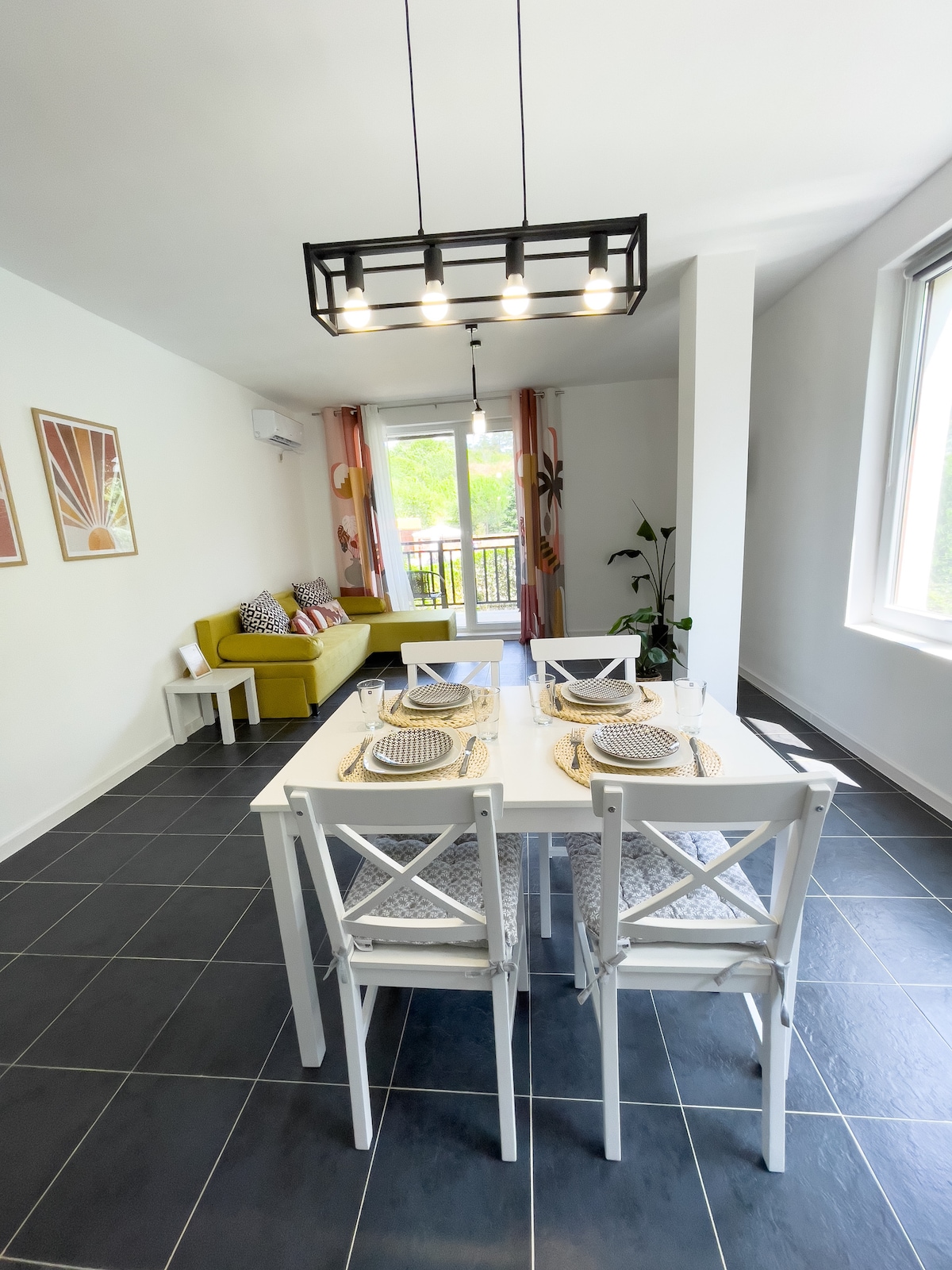 Welcome to our cozy apartment! Perfect for couples, families, or friends. Enjoy a comfortable bedroom with a double bed, a spacious living room with two sofa beds, and a fully equipped kitchen. Outside, there’s a lovely spot to relax and unwind. Amenities: free Wi-Fi, coffee/tea, fresh towels, quiet location & free parking. Whether you’re here to relax, work, or explore the area – we’ll make sure you feel right at home. Book your stay today! ☀️