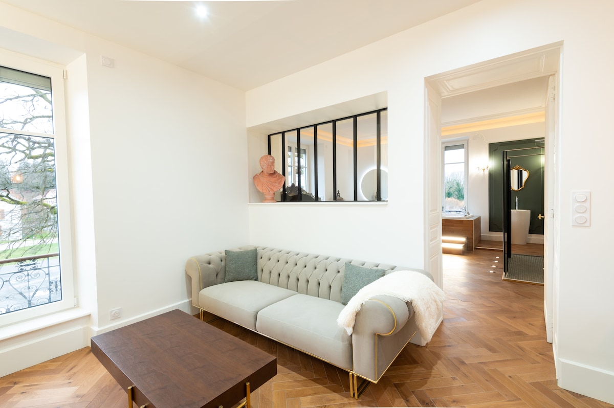 La Suit’s Charmes vous accueille dans une ambiance chaleureuse, Cocooning et apaisante. Rêver, Se reposer, Se regarder, Se sentir, S’enlacer, Se retrouver, Se confiner…S’aimer…Venez profiter de la Suit’s Charmes!! Suite de 75m2 , Face Gare de Belfort Jacuzzi Sauna Lit King Size TV 4K smart Tv, Netflix, TV Orange Wifi Cheminée Ciel Étoilé Douche XXL multi-jet (ciel douche indisponible à ce jour) Tout linge fourni Option possible: balançoire érotique/ Champagne/ appareil électroménager party