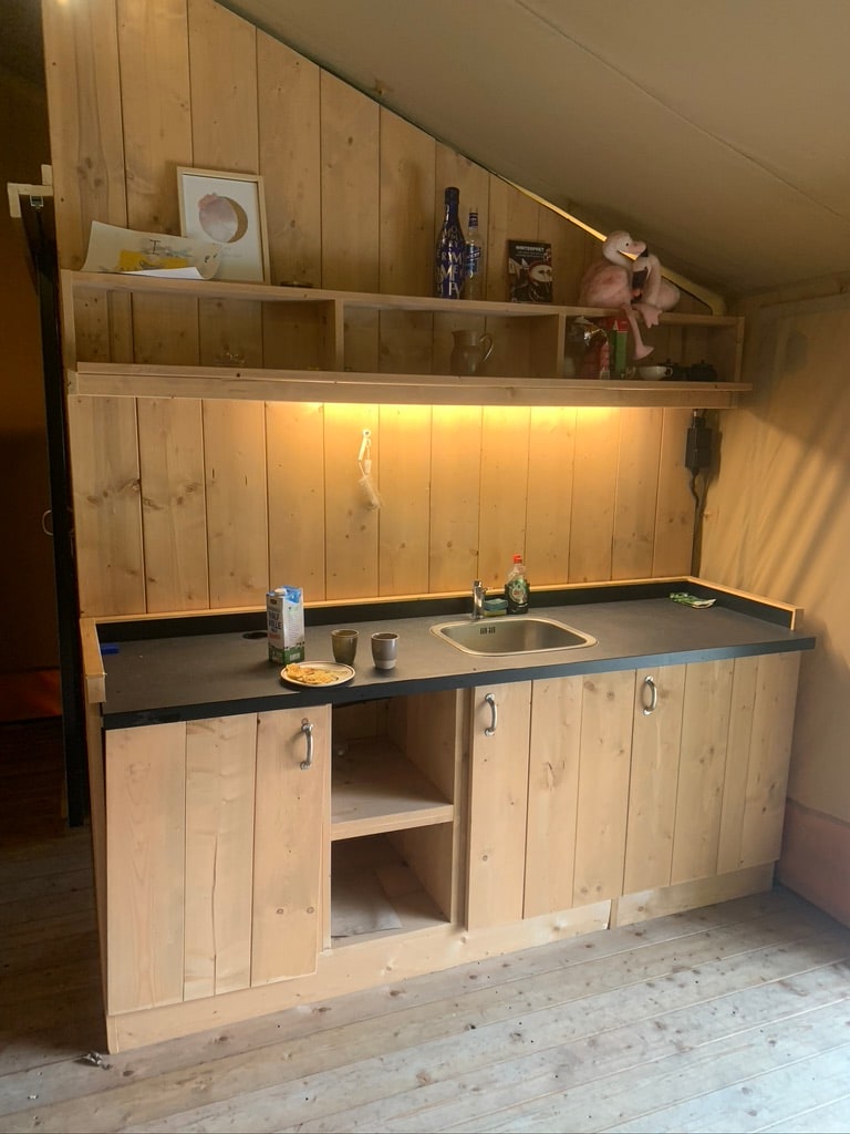 Palagi mong maaalala ang iyong pamamalagi sa natatangi at hindi pangkaraniwang lugar na ito. Sa pagpasok mo sa iyong tent, mararamdaman mong parang pumasok ka sa komportableng kuwarto sa hotel, kung saan makakahanap ka ng malaking double bed na may opsyong magdagdag ng isa o dalawang camp bed (190 x 65 cm), para sa mga bata o kaibigan. Mayroon ka ring sariling lugar na nakaupo sa harap ng tent, na may natatanging tanawin ng nakapaligid na lambak. Huwag mag‑atubiling magtanong tungkol sa eksklusibong paggamit ng campsite.