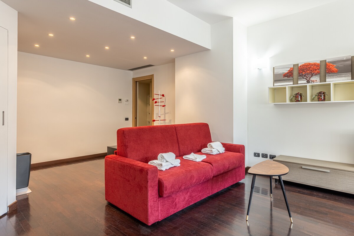 Penthouse na napapalibutan ng mga halaman kung saan matatanaw ang Milan. Matatagpuan ang apartment sa ikawalo at huling palapag at binubuo ito ng bukas na espasyo na may kusina at double sofa bed (na may dalawang topper para matiyak ang pinakamagandang posibleng pahinga), kuwartong may double bed at armchair bed at banyo. Ang apartment ay may mga nakamamanghang malalawak na tanawin ng Duomo at ng sentro ng lungsod, na maaaring pinahahalagahan mula sa cross - country window na may isang baso ng alak.