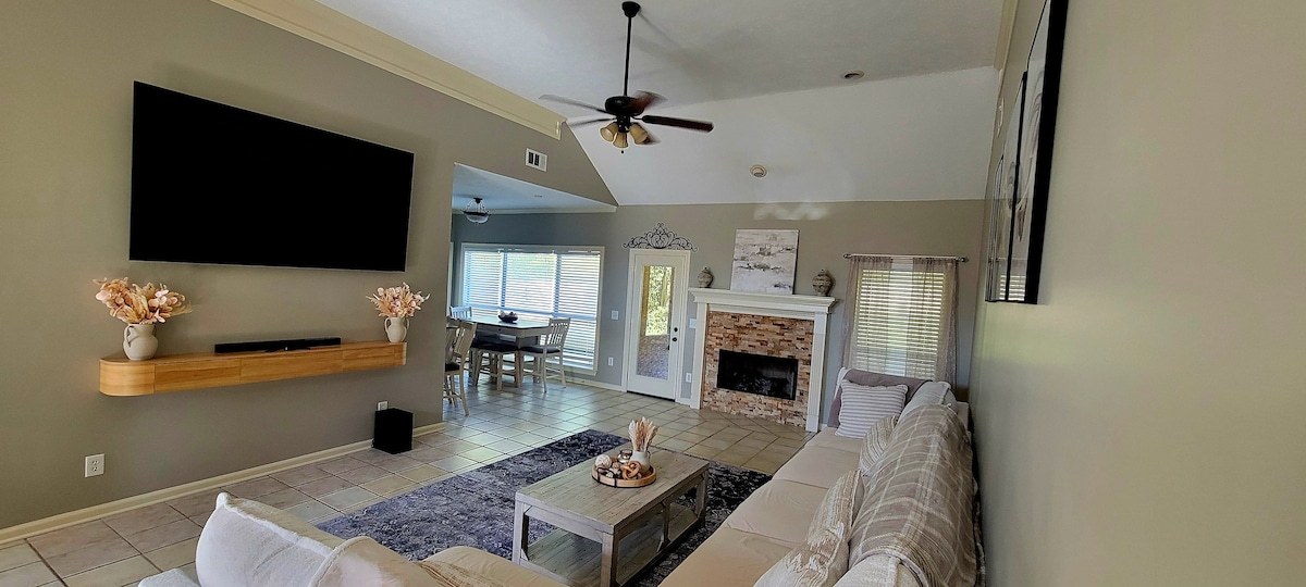 Maligayang pagdating sa iyong tuluyan na malayo sa tahanan! Nag - aalok ang maluwag at natatanging tirahan na ito ng pambihirang kombinasyon ng mga kaginhawaan, estilo, at modernong amenidad, na perpekto para sa mga pamilya, kaibigan, o solo adventurer na naghahanap ng hindi malilimutang bakasyon. Habang papasok ka, sasalubungin ka ng isang bukas na konsepto na living space na puno ng natural na liwanag, salamat sa malalaking bintana Nagtatampok ang livig room ng masaganang upuan at komportableng fireplace para sa pagrerelaks.