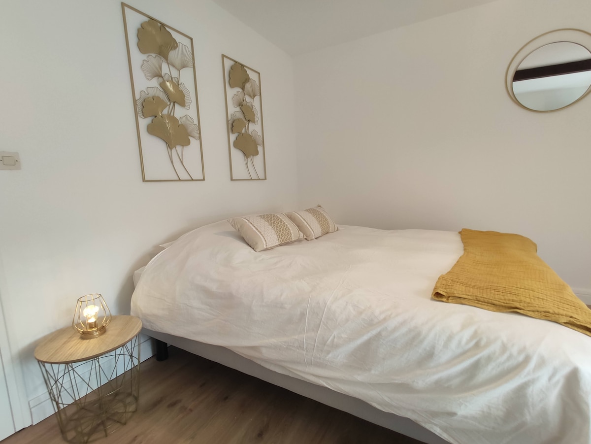 Komportable at maayos na studio, perpekto para sa isang kaaya-ayang pamamalagi para sa dalawa o tatlo. Nag‑aalok ito ng kumpletong kusina, komportableng sala, kuwartong may malaking dressing room, at modernong banyo. May paradahan sa bakuran. May kagubatan, leisure center, at mga tindahan sa malapit. 15 metro ang layo ng mga thermal bath ng Saint-Amand, 15 metro ang layo ng tram kung lalakarin, at madaling mapupuntahan ang Rubika, Stellantis, at Petite Forêt shopping center. 15 metro ang layo ng Alstom.