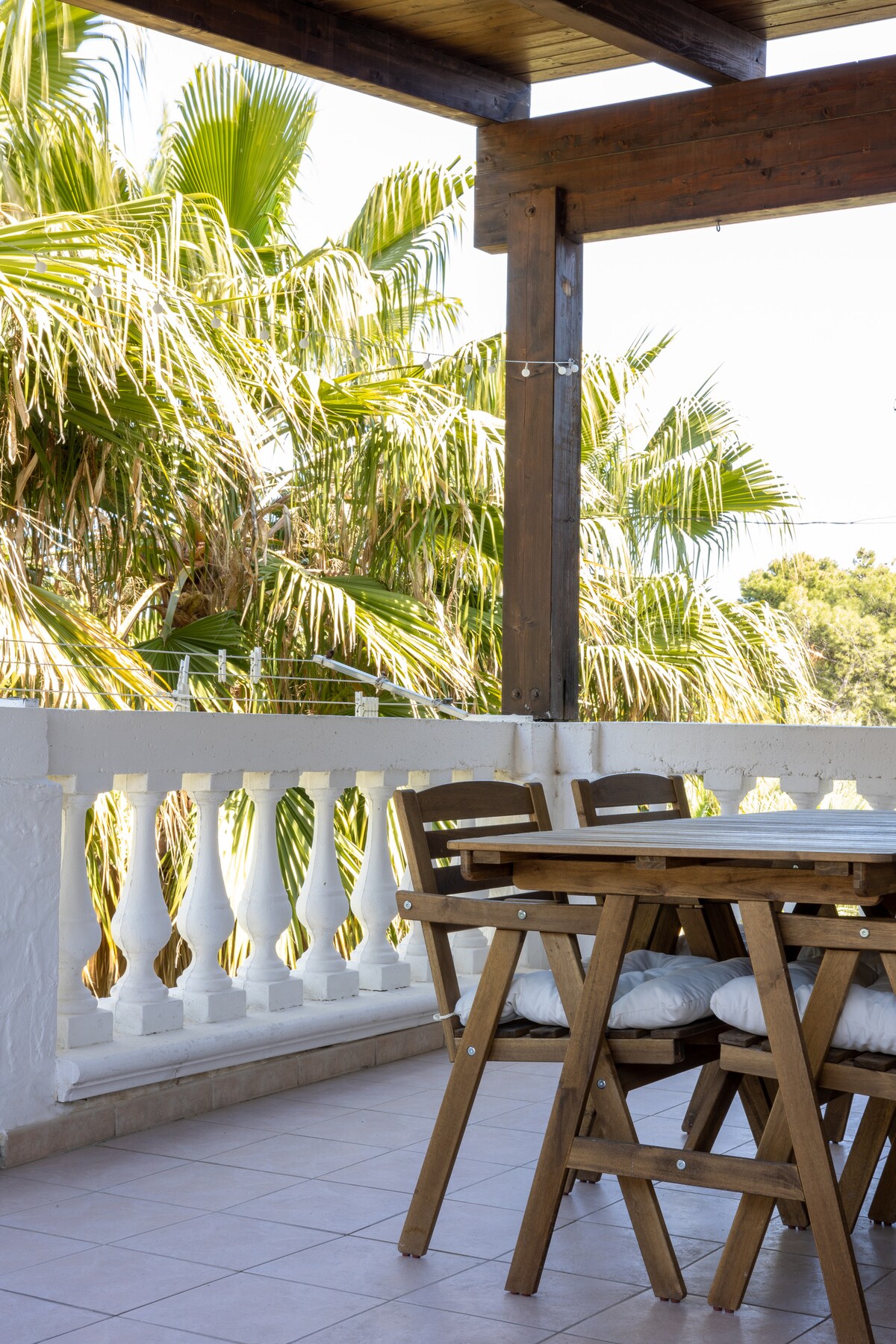 The house is located on the top floor and has a private veranda surrounded by giant palm trees where it is possible to have breakfast or lunch in contact with nature. The kitchen and living room are located in an open space with a typical Apulian Style. There is a bedroom with a double bed and a bedroom with 2 single beds. For families with more than 2 children, it is possible to use the sofa bed in the living room. The house is 5 min close to the beach and centru