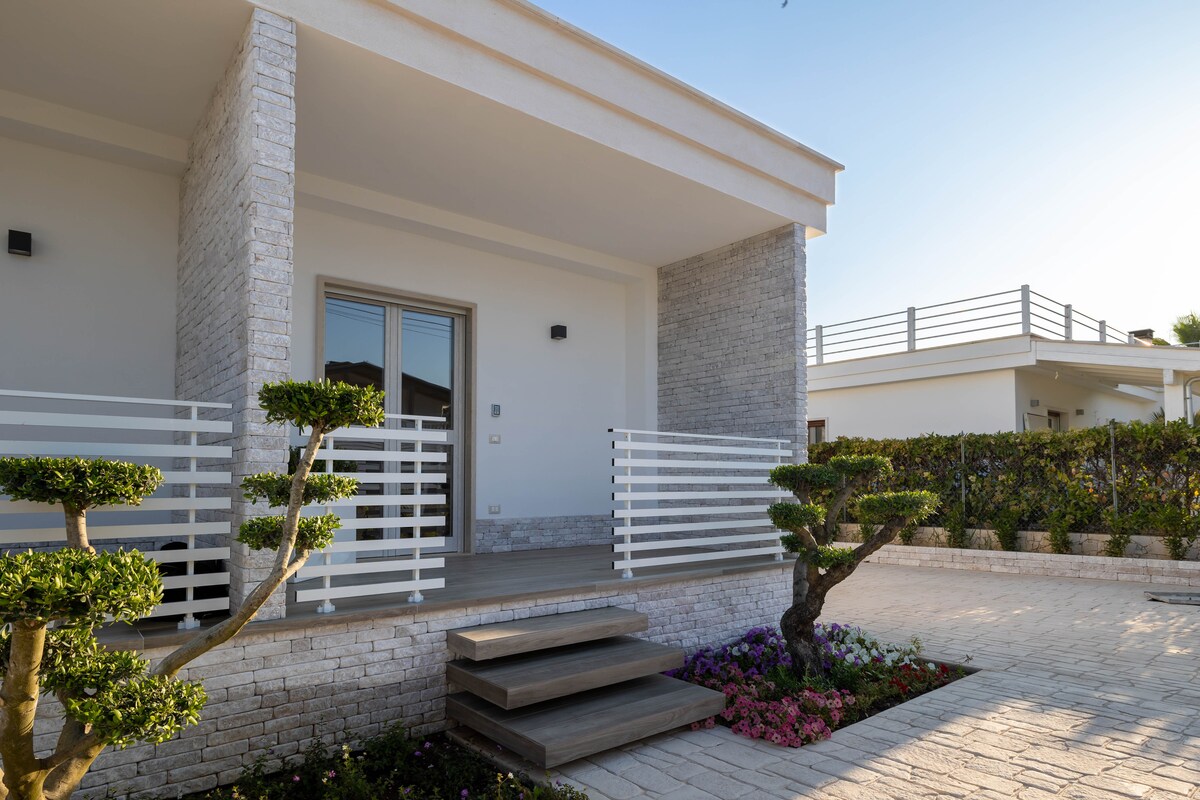 TRABUCCO: Newly built independent holiday homes (year 2023) with design furniture just 350 m from the Pizzomunno Promenade (the most famous in Vieste). The beach can be reached on foot along the road as soon as you leave the gate of the property. On the seafront there are many restaurants, bars, private beaches and also free! The center is only 2 km away. This place is family friendly and the best to enjoy your stay in Vieste.
