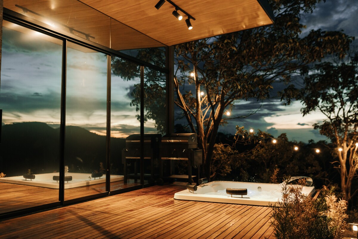 Isang natatanging lugar, moderno at katangi - tangi. Nag - aalok ito ng kaginhawaan sa gitna ng kamangha - manghang tanawin. Pag - mirror sa mga bundok at kalangitan ng Pirenópolis, na may mahusay na kaginhawaan at estilo na nag - aalok ng pagpipino at katahimikan. Matatagpuan sa kanayunan ng Pirenopolis, humigit - kumulang 25 minuto mula sa downtown. Nag - aalok ang lugar ng: - Swimming pool na may Infinity - Hot Tub - Modernong kusina - Lugar ng Gourmet - Nakabitin na network na may malawak na tanawin - Deck - Rio, 5 minutong lakad - Mga trail …
