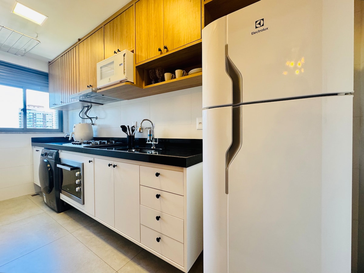 Masiyahan sa hindi malilimutang pamamalagi sa mararangyang at komportableng 2 silid - tulugan na tabing - dagat na ito Ganap na nilagyan ng hydro spa na may chromotherapy, king bed at double reversible single bed, tv sa mga kuwarto at sala, wi - fi at mga amenidad para sa mga sanggol, nag - aalok kami ng kaginhawaan, seguridad na may 24 na oras na concierge at paglilibang na may rooftop pool na may tanawin sa tabing - dagat Magkakaroon ka ng natatanging karanasan sa Vila Velha na malapit sa lahat Mag - book ngayon at magkaroon ng mga hindi malilimutang sandali kasama ang iyong pamilya!
