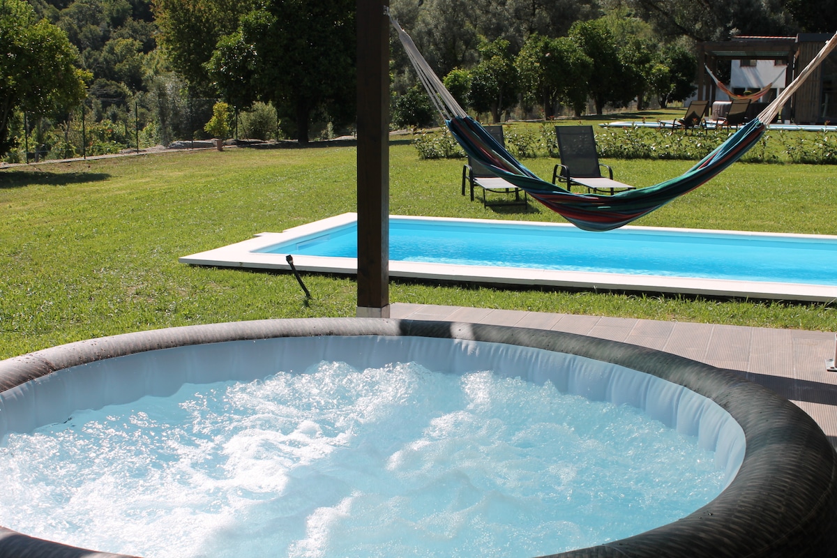 Country house na may 4 na silid - tulugan, 2 sa bawat palapag, balkonahe at terrace, hardin at swimming pool. Napapalibutan ng 23 hectares ng mga ubasan at may access sa ilog Cávado, sa tabi nito ay posible na kumuha ng isang magandang ruta ng paglalakad. Available ang mga pagbisita sa manor house at art gallery at mga aktibidad tulad ng pagtikim ng alak, mga klase sa yoga, pagsakay sa kabayo, pagniningning, mga picnic, at iba pa.