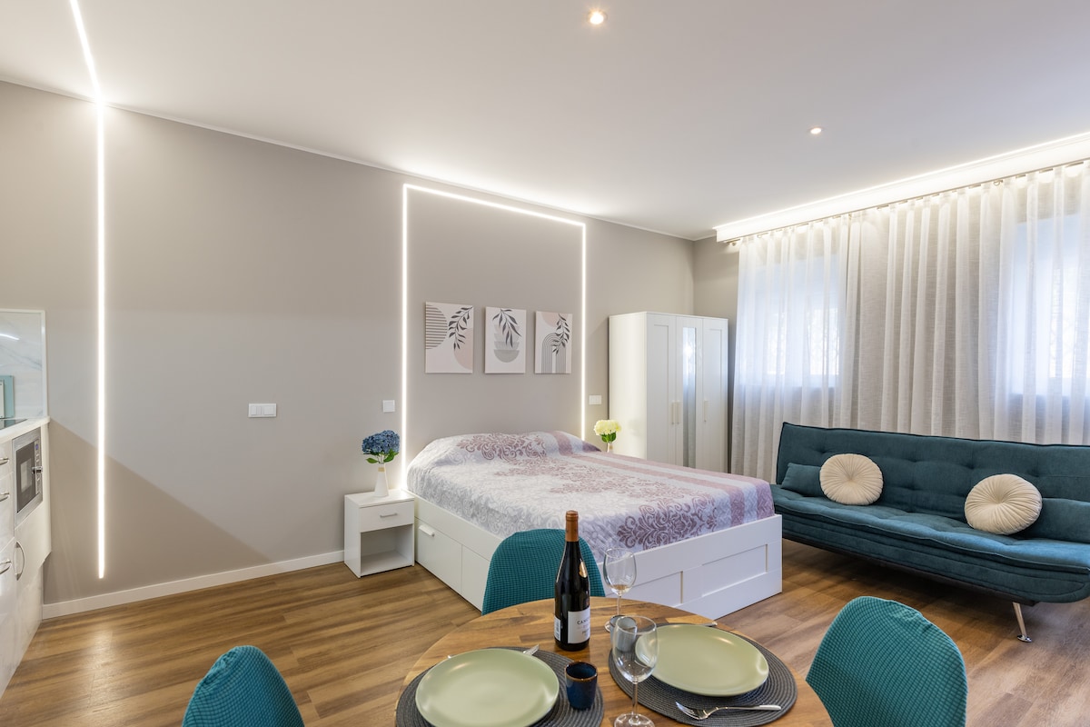 🚇 May self‑check‑in para sa kumpletong privacy at libreng paradahan ang modernong 35 m² na studio na ito na 3 minutong lakad lang mula sa metro at 10 minutong biyahe mula sa airport. Mainam para sa mga mag‑asawa at pamilya, pilgrim, at business traveler. May komportableng queen‑size na higaan, sofa bed para sa 2 tao, 1000 Mb internet, at Smart TV. May kumpletong kusina, washer at dryer, plantsa at plantsahan. Direktang nakakakonekta ang metro sa downtown ng Porto, mga pangunahing shopping center, at mga beach.