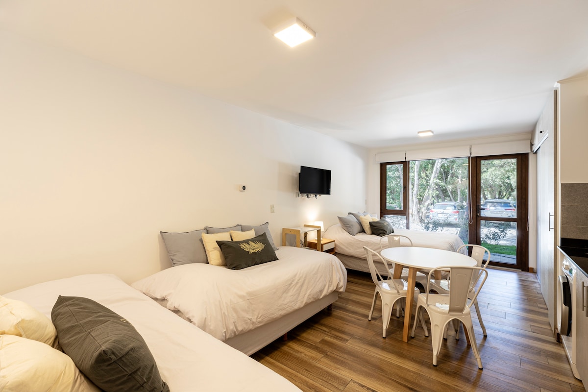 Magrelaks sa natatangi at tahimik na apartment na ito sa gitna ng Bariloche. May mga tanawin ng lawa mula sa bawat kuwarto, pinagsasama nito ang modernong disenyo, init, at maraming natural na liwanag. Idinisenyo ang bawat sulok para sa komportable at espesyal na pamamalagi. Magugustuhan mo ito! May paradahan 250 metro ang layo sa apartment. 24 na oras na ligtas na paradahan (Kasama sa presyo)