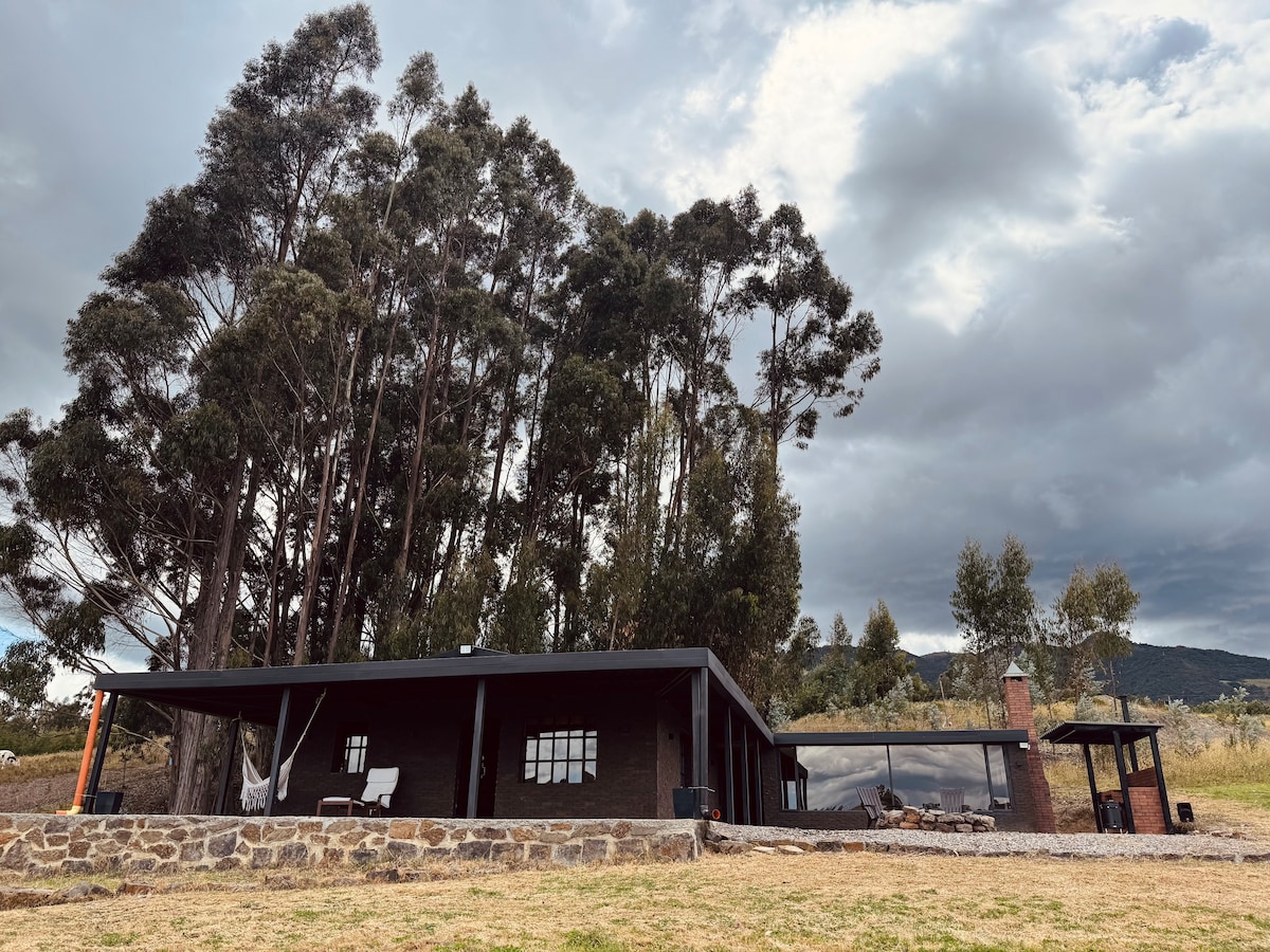 Disfruta de una escapada tranquila para conectarte con la naturaleza en una cabaña tranquila a tan solo 1h y 30min de Bogotá. Despierta viendo hermosas montañas, mientras escuchas el sonido de los pájaros, toma una tasa de café y comparte un desayuno tipo picnic al aire libre. En las noches puedes disfrutar una tabla de quesos con una copa de vino caliente, mientras disfrutas el calor de la chimenea. ¡Vive una experiencia llena de paz en una casa moderna de madera que te invita a descansar!