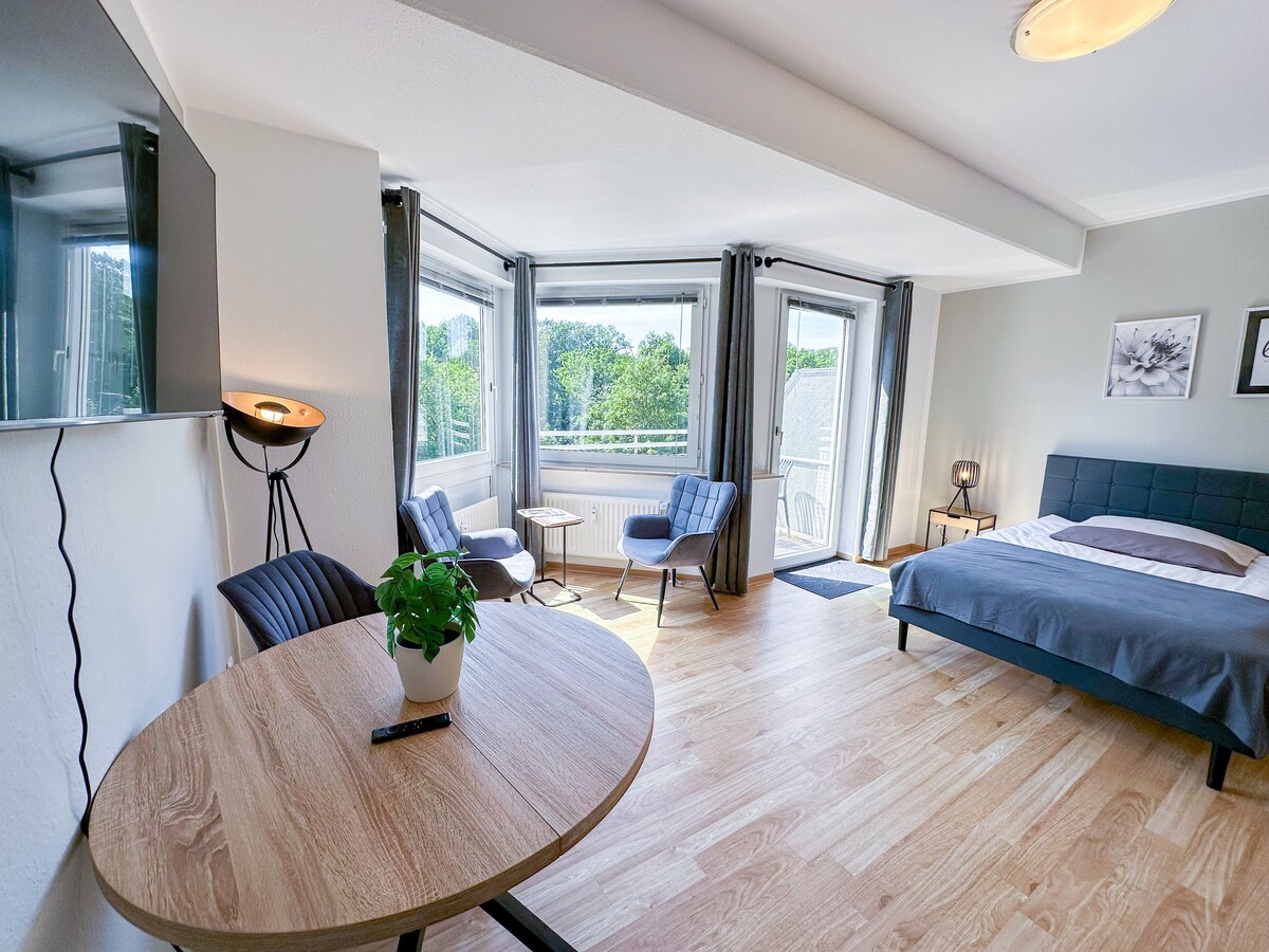 Ang bagong apartment (kasama ang sep. Ang pasukan) ay nasa gitna ng pagkain na pinakamagandang kapitbahayan: Werden. Asahan mo: Isang malaki at naka - istilong kusina - living room kasama. Dining table at maaliwalas na sofa sa maaraw na conservatory (mga tanawin ng kanayunan). Isang maluwag na silid - tulugan na may malaking double bed at built - in closet. Maliwanag na pasilyo at naka - istilong banyong may rain shower/seating area. Bilang karagdagan: bagong parquet/tile, Wi - Fi, bed linen, tuwalya, espresso machine at maigsing distansya sa mga cafe, restawran, Baldeneysee 2 min.