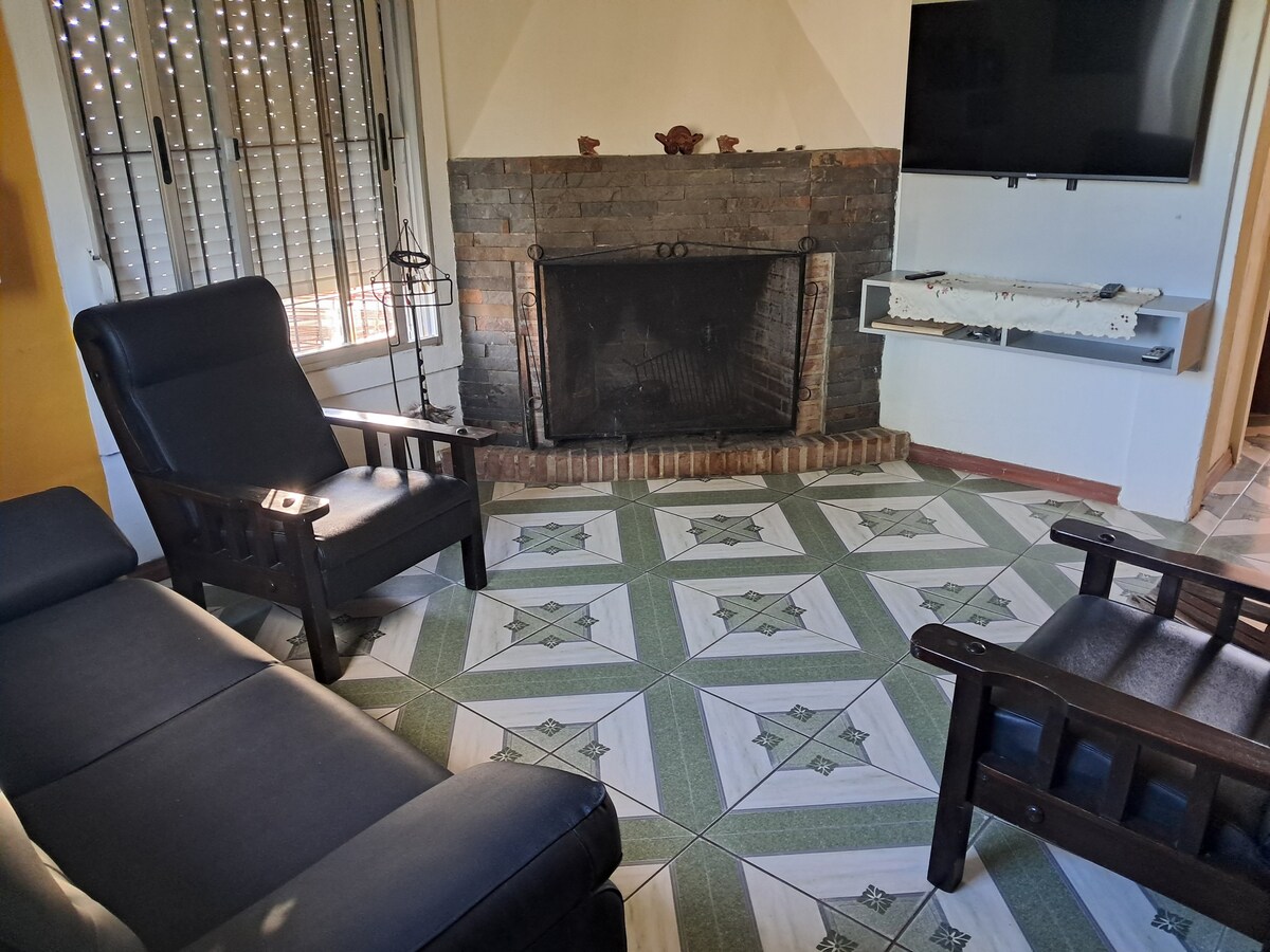 Komportableng maliwanag na bahay na may hardin, garahe at ihawan. Napakaluwang na sala na may kalan, 2 silid - tulugan, 1 banyo at silid - kainan sa kusina. 8 bloke papunta sa downtown. Mainam para sa pamamalagi sa paglalakad ng pamilya, pagbisita sa Quebrada de los Cuervos Protected Area o mga business trip.