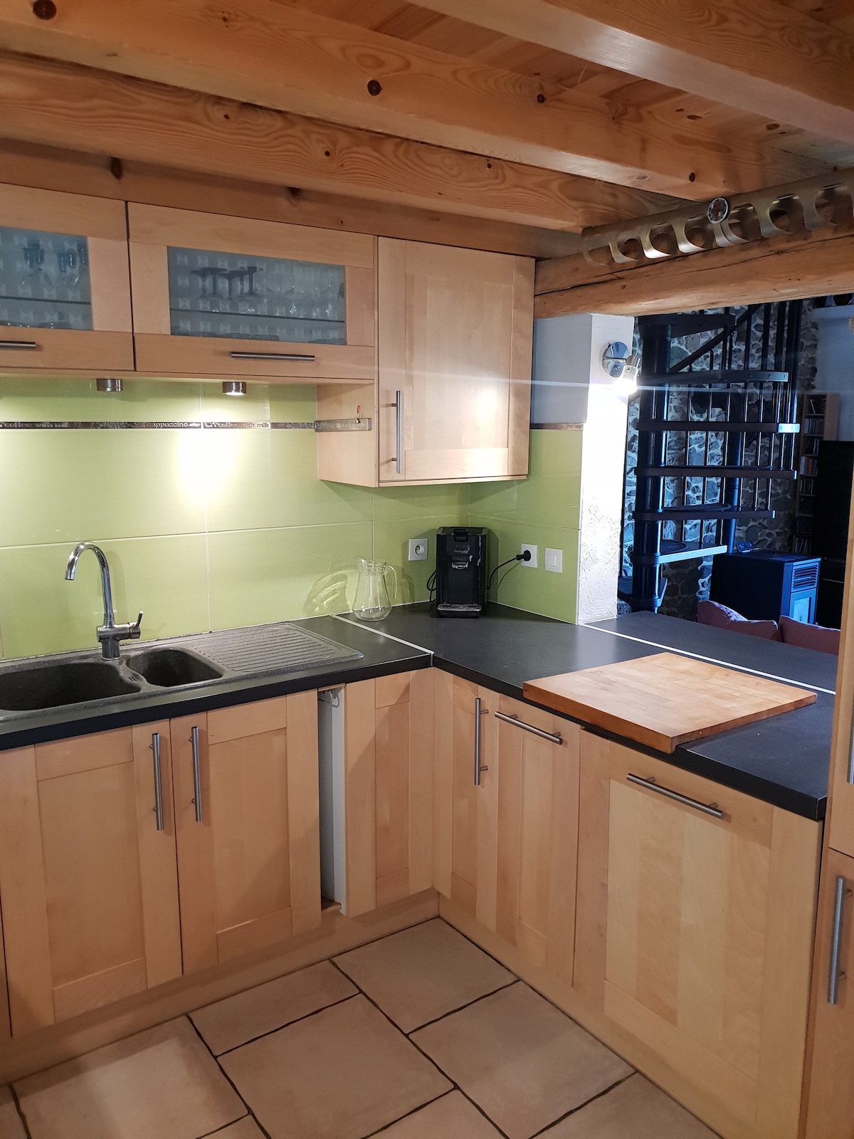 Masiyahan sa kapayapaan, tanawin at kaginhawaan ng naka - istilong chalet na ito. Talagang angkop bilang romantikong bakasyon o pagrerelaks sa kalikasan kasama ng iyong pamilya. Kami ay nasa taas na 650 metro, sa isang mainit na tag - init ito ay palaging medyo mas malamig kaysa sa lambak at may isang simoy, napaka - kaaya - aya. Sa gabi, lumalamig ang lawa at magandang tulog ito sa gabi. Hindi namin kailangan ng aircon. Tinatanggap ang mga aso, € 15 bawat pamamalagi. Para sa taglamig, may kalan na ginagamitan ng kahoy. Nagbibigay kami ng wheelbarrow na may kahoy na panggatong sa halagang €15.