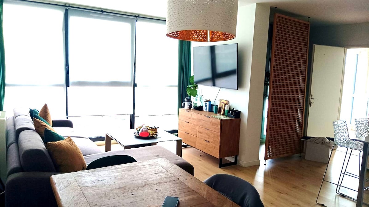 Welcome sa aming 62 m² na apartment, 5 km mula sa Stade de France at 15 min para makapasok sa Paris. Maluwag at may magandang dekorasyon, nag - aalok ito ng mainit na kapaligiran na mainam para sa pagrerelaks bilang mag - asawa. Masiyahan sa isang malaking TV na may Netflix at higit pa (kinakailangan ang account). Kumpleto ang kagamitan sa modernong kusina, naka - istilong banyo na may walk - in na shower at Wi - Fi. Malapit sa pampublikong transportasyon at mga lokal na amenidad. Mag - book na para sa mainit at magiliw na karanasan! 😊