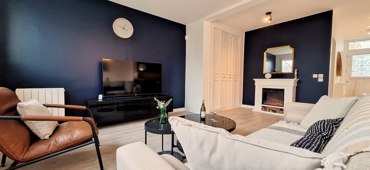 Idéal pour un couple, ou avec 1 ou 2 enfants (salon équipé d'un canapé-lit de 130cm de large). Détendez-vous dans ce logement unique et élégant à 20mn de Paris centre, avec son jardin privatif de bambous et d'oiseaux. Entrée privative, Parking devant la maison, Wifi gratuit. Il est situé entre Paris centre et Disneyland. A 8 minutes à pied de la gare et restaurants, 5 minutes à pied des commerces/ boulangerie/supermarché .. 15-20 mn de trajet pour aller à Paris et Disneyland
