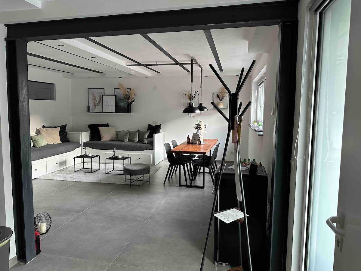 Dumating. Mag‑relax. Magpahinga. Nag‑aalok ang bagong ayos at de‑kalidad na studio apartment na ito sa Saarlouis ng tahimik at modernong kapaligiran na may minimalistang Scandinavian style. Mainam para sa mga bisitang pangnegosyo, mga nagbu-book ng mga pangmatagalang pamamalagi, at mga bumibiyahe sa lungsod na naghahangad ng kaginhawaan, functionality, at lokasyong malapit sa mga pasyalan. May dalawang hiwalay na kuwarto ang apartment at kayang tumanggap ng hanggang 6 na tao. Mga de‑kalidad na materyales at maayos na layout ng kuwarto para maging komportable ka.