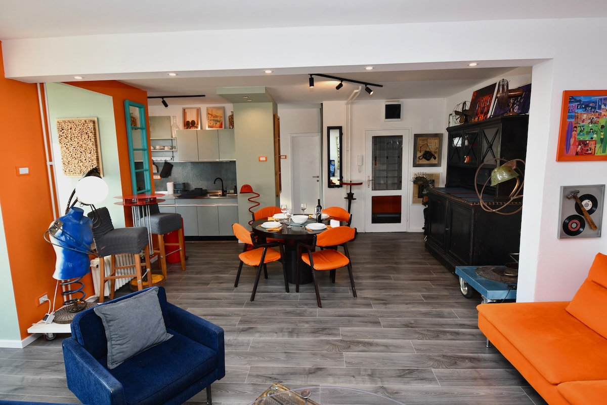 Big & Bright Artsy Orange Apartment na may tanawin ng lungsod