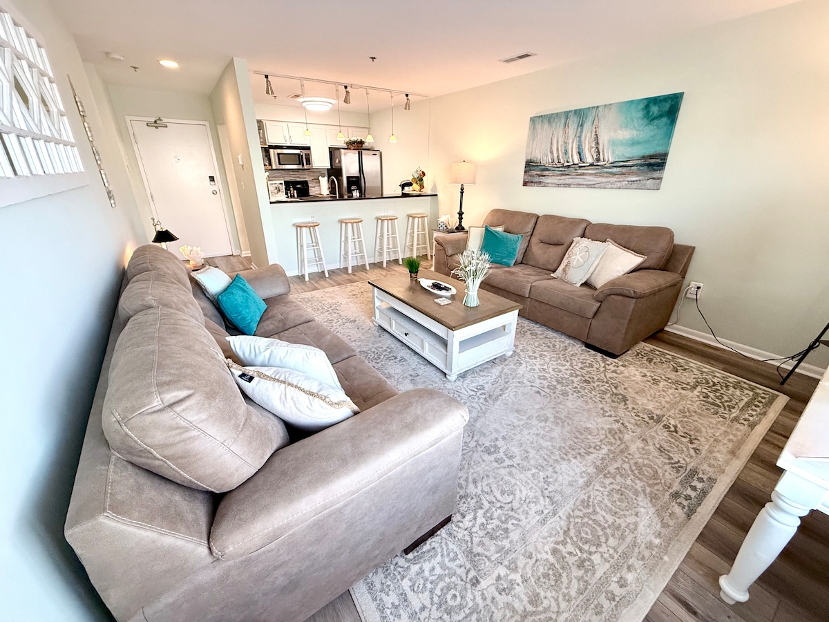 Magrelaks sa tahimik at naka - istilong tuluyan na ito na 2 bloke lang papunta sa beach. Ang Relax & Enjoy ay isang 2Br/2BA condo na may balkonahe na matatagpuan malapit sa mga pamilihan, restawran, tindahan. Washer/dryer, kumpletong kusina, at paggamit ng mga amenidad sa loob ng gusali tulad ng shower sa labas at mga inihaw na lugar sa tabi ng pool na bukas Memorial Day hanggang katapusan ng Setyembre. Pangunahing BR na may king bed, TV, banyo, at mga aparador. Ikalawang silid - tulugan na may mga double bunk bed, TV, at aparador. LR w/ queen sleeper sofa. Dapat ay 21 taong gulang para mag - book.