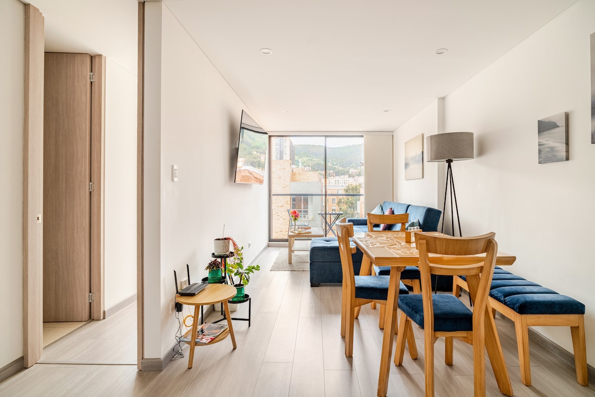 Maligayang pagdating! Ilunsad ang aming apartment sa eksklusibong kapitbahayan ng Chicó. Komportable at madiskarteng lokasyon, nag - aalok ito ng mga komportableng kuwarto, sala na may Wi - Fi at sofa bed, at kusinang may kagamitan. Malapit ito sa mga klinika, pangunahing kalsada at pampublikong transportasyon, at ilang minuto mula sa mga shopping at gastronomic area tulad ng Parque de la 93 at Zona T. Lahat ng kailangan mo para sa pambihirang pamamalagi. Nasasabik kaming makita ka sa lalong madaling panahon! Tandaan: Out - of - service pool dahil sa pagmementena